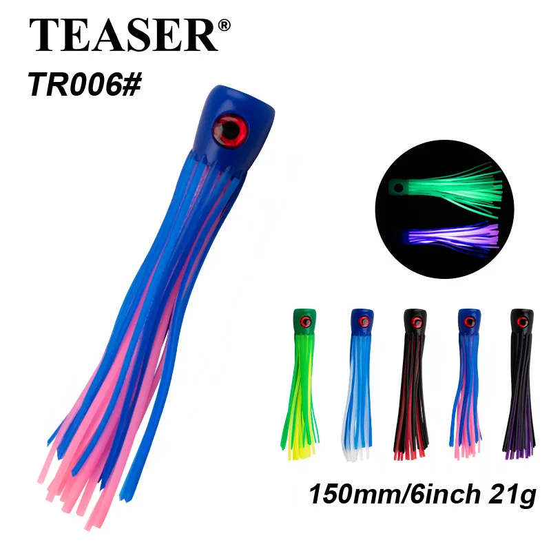 TEASER-Señuelo de pesca de margaritas con cabeza de resina de 21g, 6 pulgadas, falda de calamar suave, señuelo de pesca de pulpo