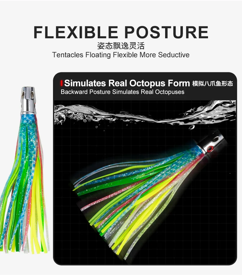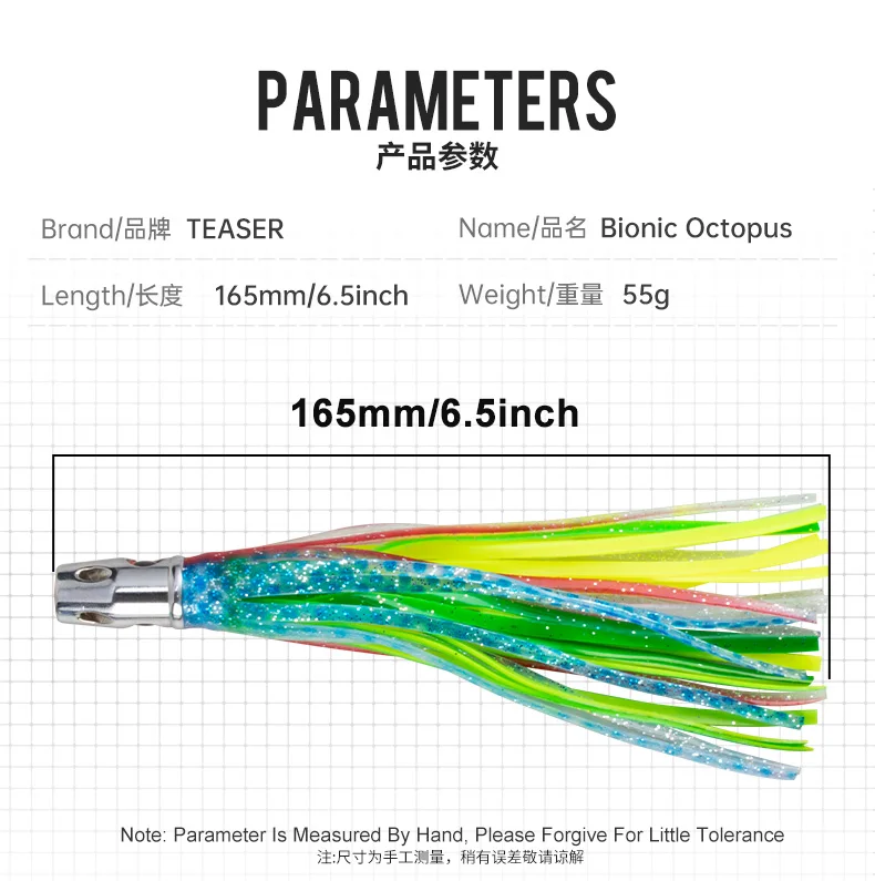 TEASER TR003 Pulpo Calamar Falda Cebo Pesca Marlin Atún Gran Juego Trolling Ballyhoo Rig Silicona Pesca Señuelo 7 pulgadas/18cm 55g