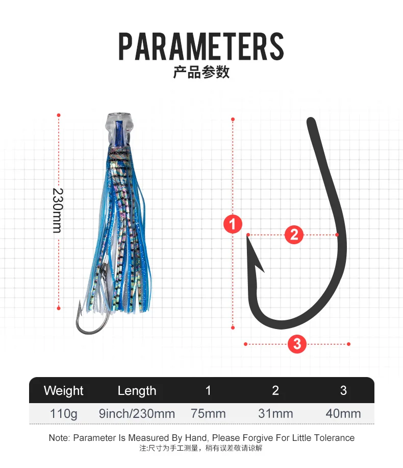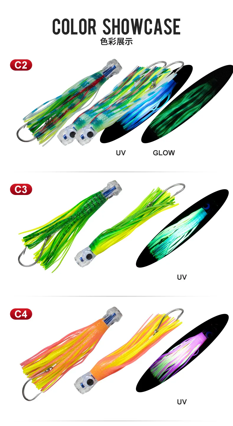 TEASER 110g Deep Sea UV Trolling Señuelos de Pesca Big Game Marlin Tuna Señuelo de Pesca Portátil Bionic Squid Bait Octopus Soft Lure