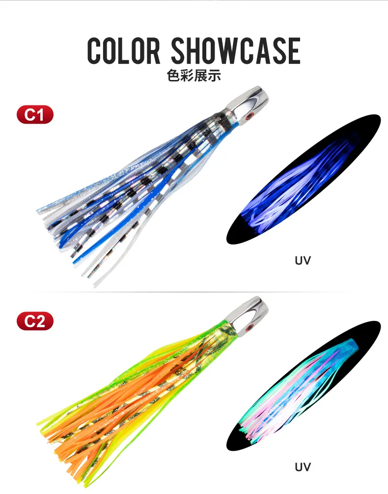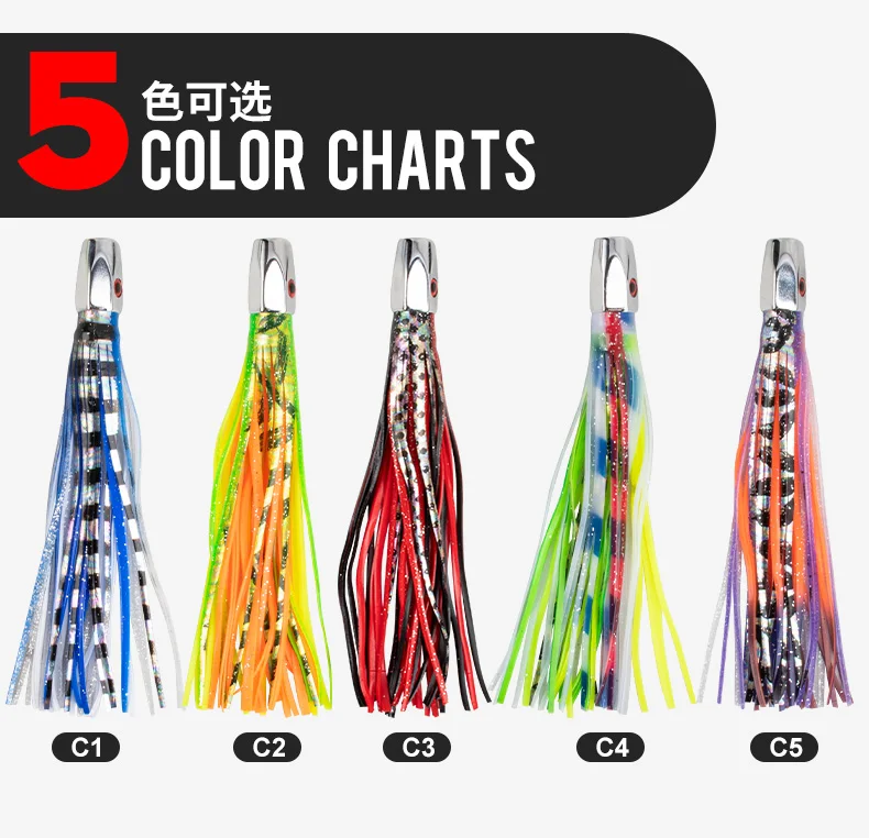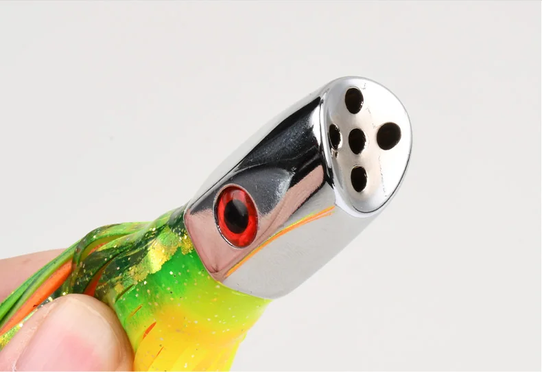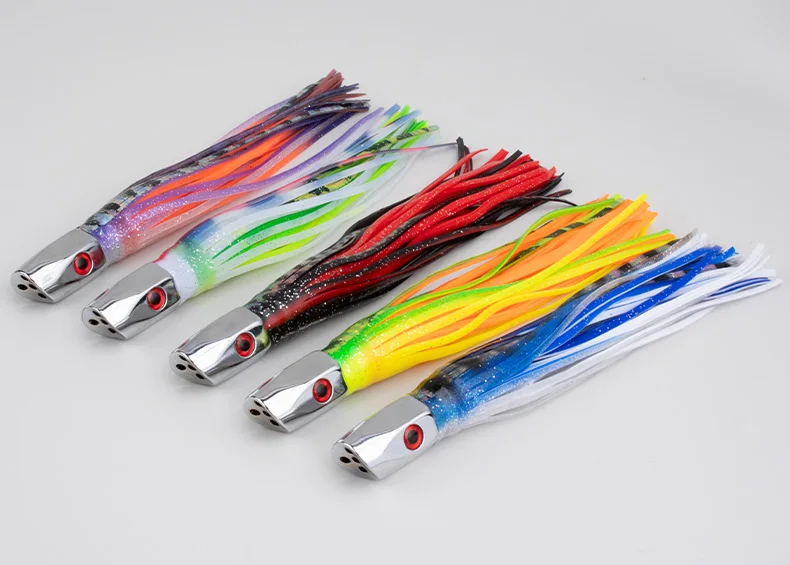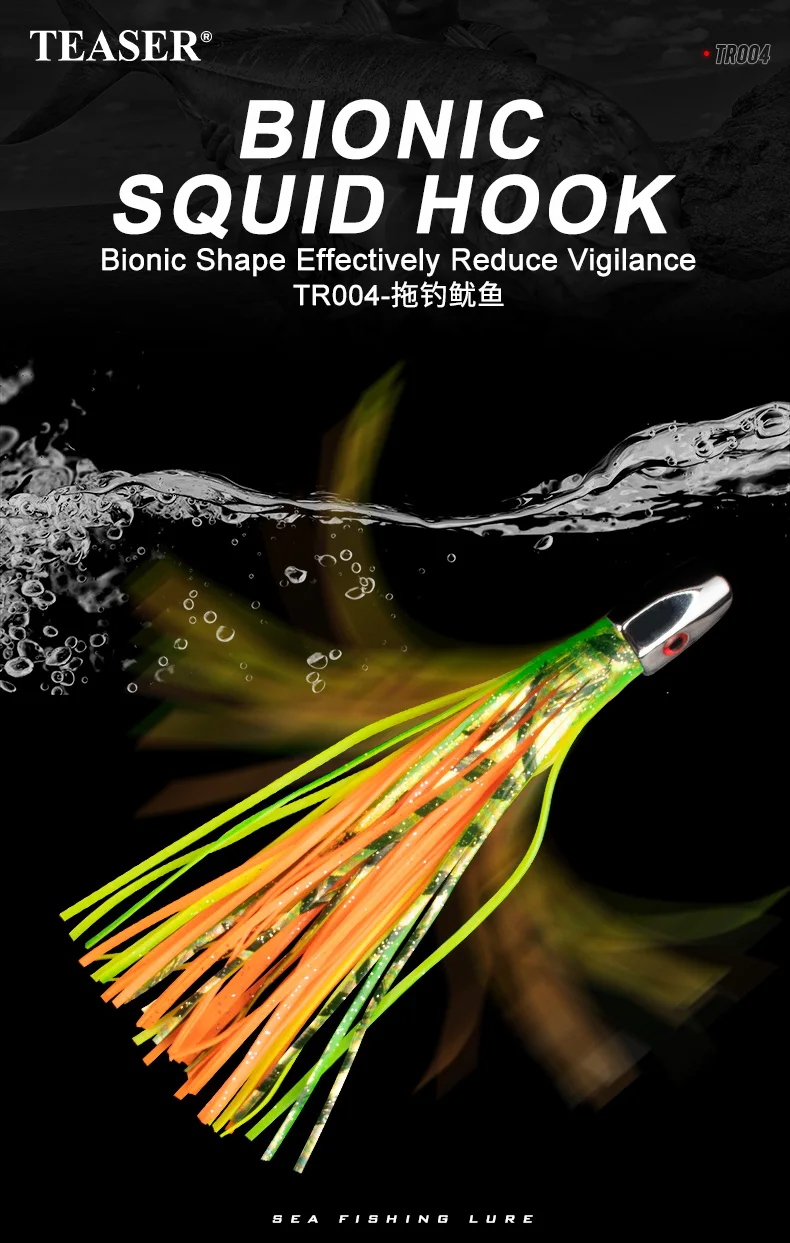 TEASER TR004 suave falda de calamar señuelo cabeza de Metal aparejo corrico señuelo de atún pulpo gran juego pesca Marlin Ballyhoo Rig 76g 9 pulgadas