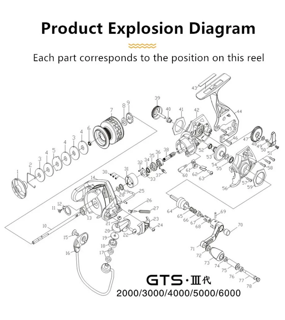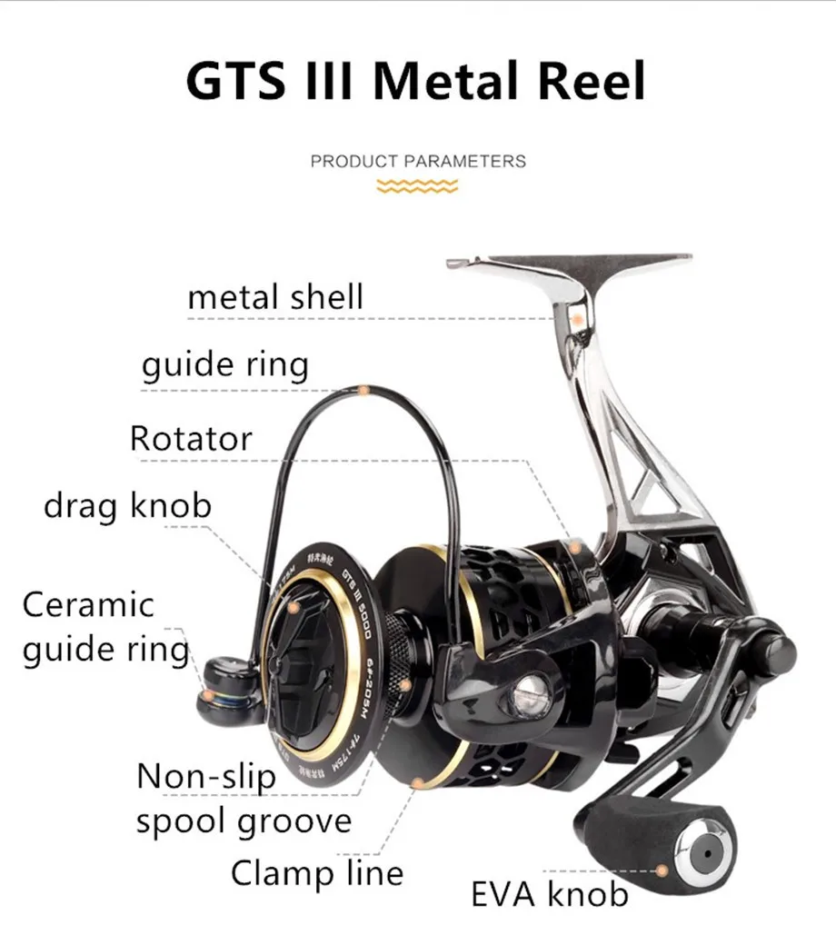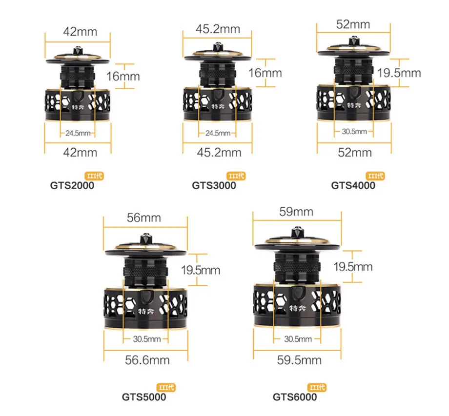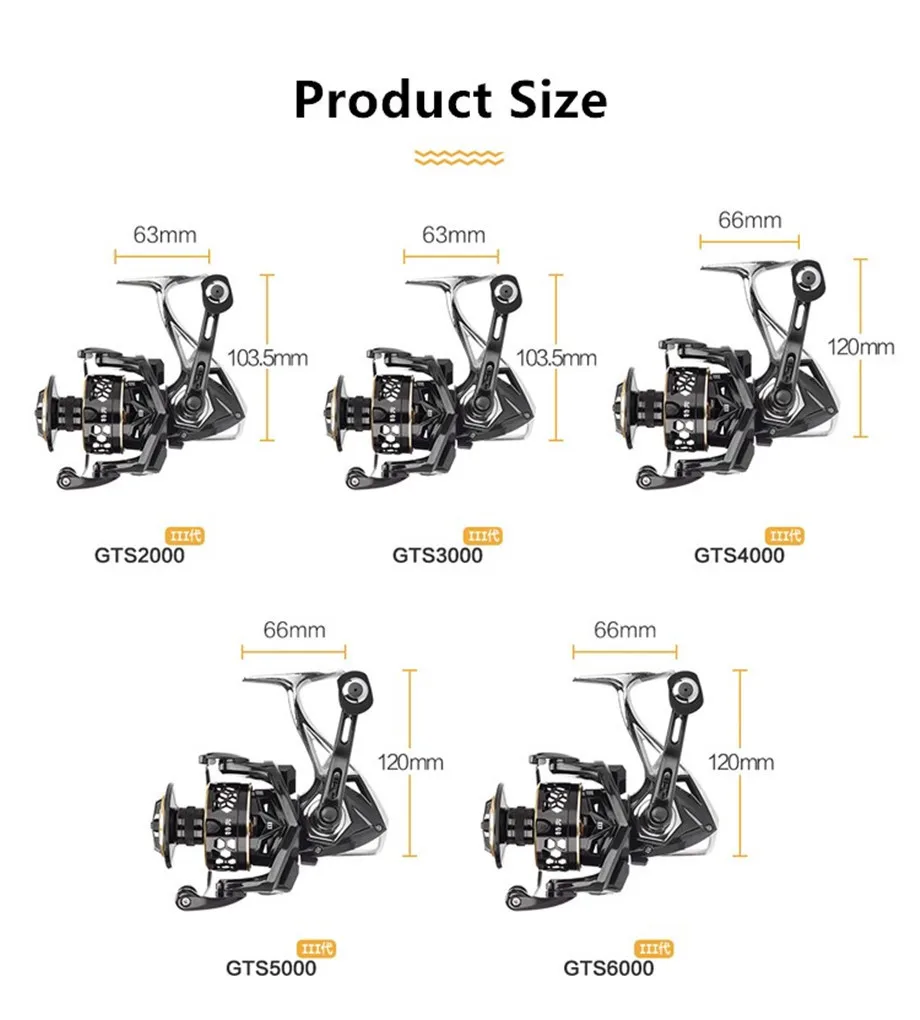 GTS III6000 | Peso: 384g | relación:4,9: 1| Arrastre máximo: 20 kg | Capacidad de Línea: 0,45mm/185 m 0,50mm/150 m