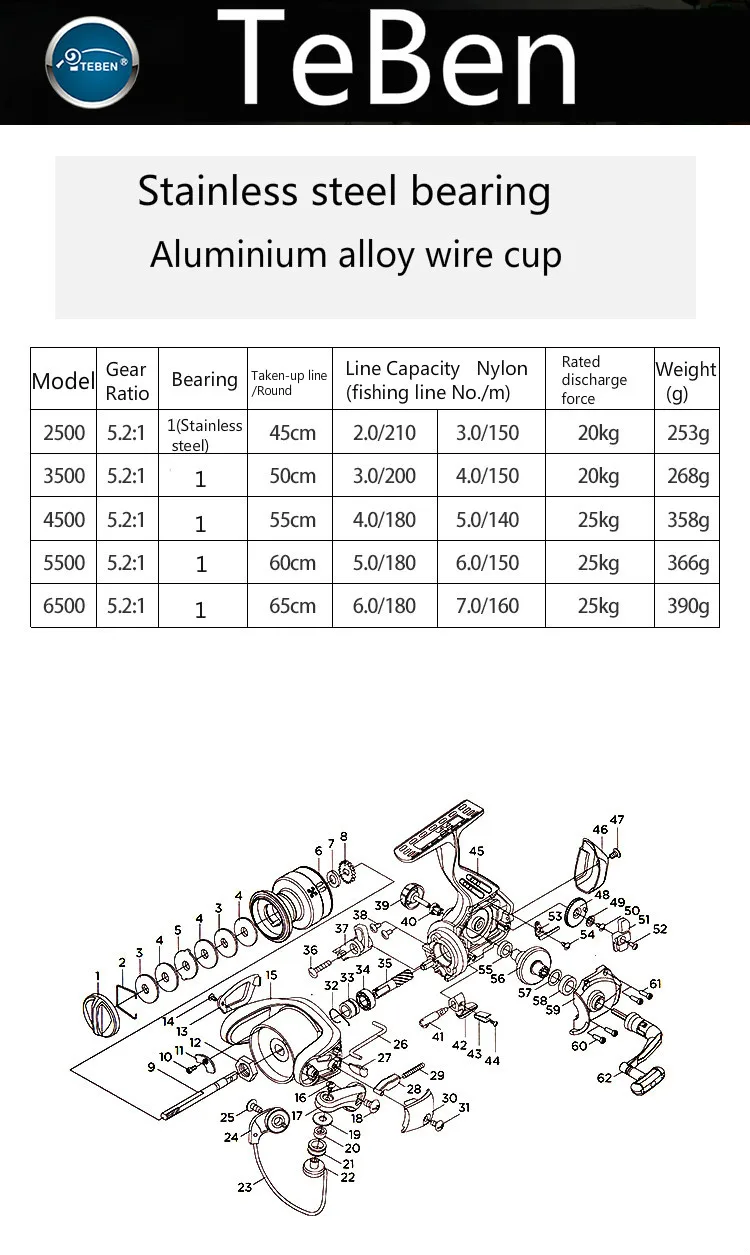 1. Rodamiento de acero inoxidable (168 horas de prueba de pulverización de sal sin óxido), para evitar la corrosión del agua marina 2. El tratamiento de fosfatación de la superficie del dispositivo de transmisión, mejora el rendimiento anticorrosión de las piezas, mejora la resistencia al desgaste 3. La línea de lanzamiento rebota de forma flexible, lanzando la línea de pesca suavemente sin anudar, puede lanzar una distancia más larga. 4. Disco de diente de súper dureza, puede soportar una tensión más potente 5. Brazo basculante, espacio de diseño preciso, plegado de una tecla, larga vida útil. 6. El cuello de bobinado de la rueda de alambre adopta una tecnología especial para evitar que el bobinado se afloje y gire.