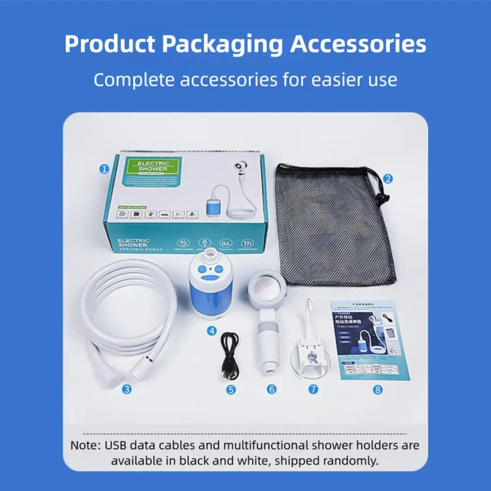 - Rechargeable Water Pump: Equipped with a powerful rechargeable pump, it provides a steady water flow, allowing for a comfortable shower experience without the need for a constant water source.