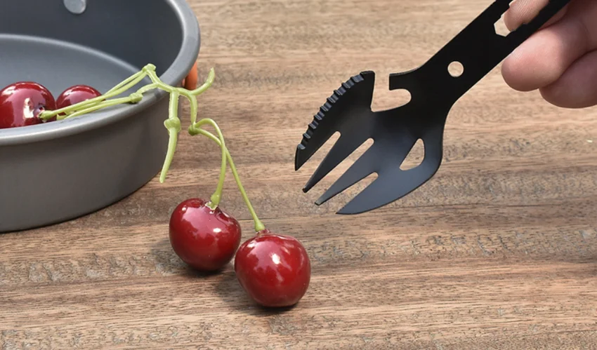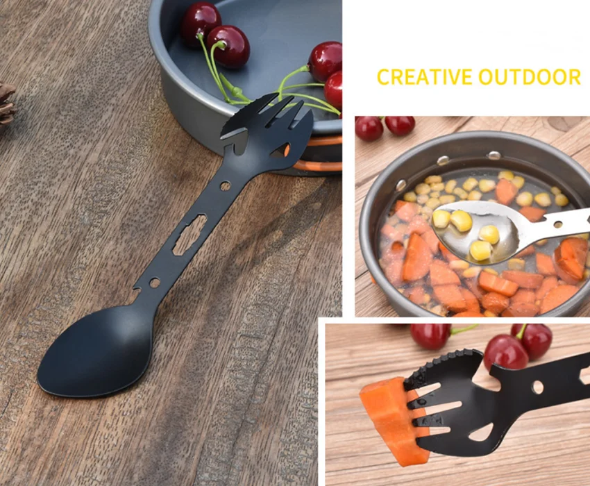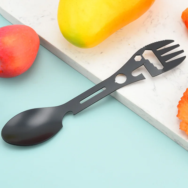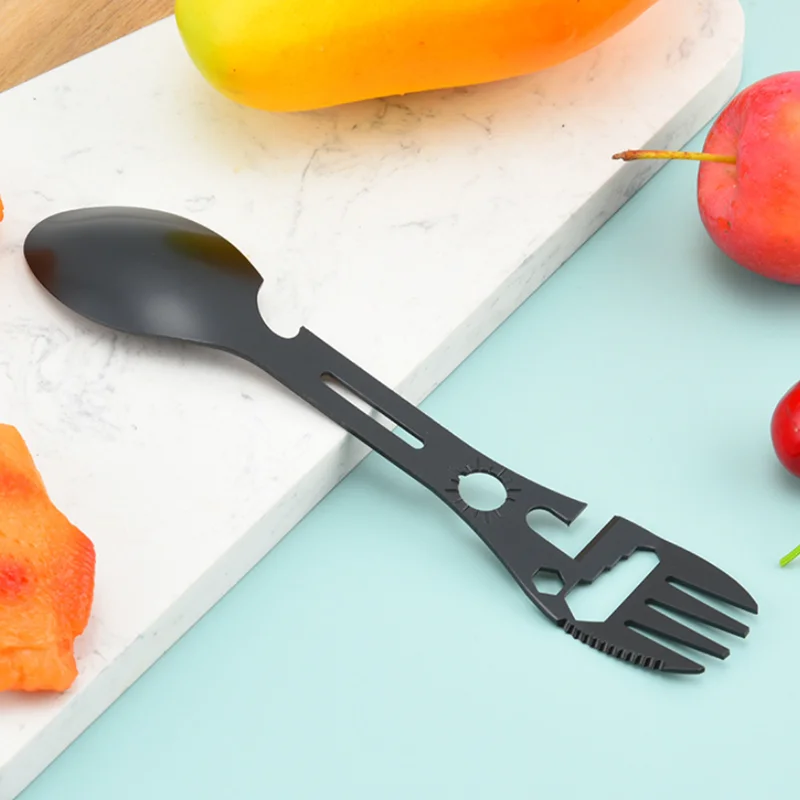 Tenedor multiherramienta de acero inoxidable, tenedor deportivo, abridor de botellas para campamento de Picnic, llave, herramienta de arpón, cubiertos, vajilla portátil, cuchara, cubiertos