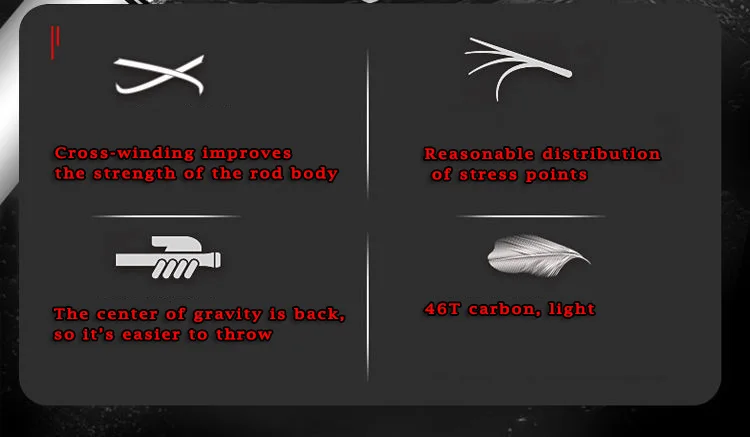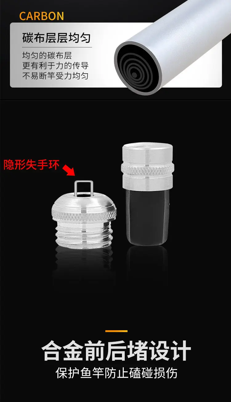 2.The fishing rod make of 46T carbon, light but strong.