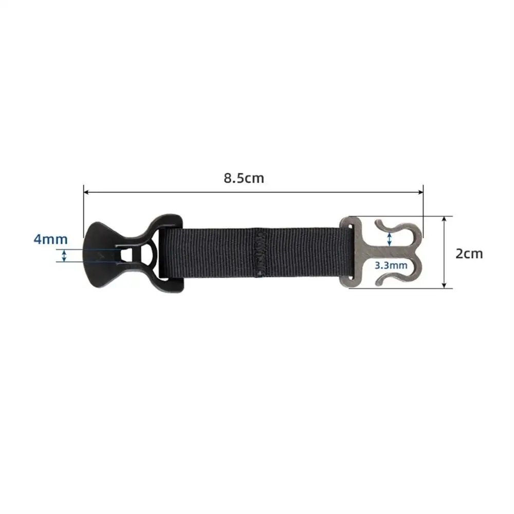 Material: Nylon+Stainless steel+ABS Color: Black (As Pictures Show) Size: About 85x20mm/3.34x0.78inch(As Pictures Show) Weight: About 5.5g /pc Package Includes:1Pc Rope Holder 1. Brand new and high quality 2. Made of high quality material, durable and practical to use 3. Tent double-door pull-up, used for the connection and fixation of tent double-door and wind rope, stainless steel hook to link tent, ABS plastic adjustable climb can be linked to wind rope