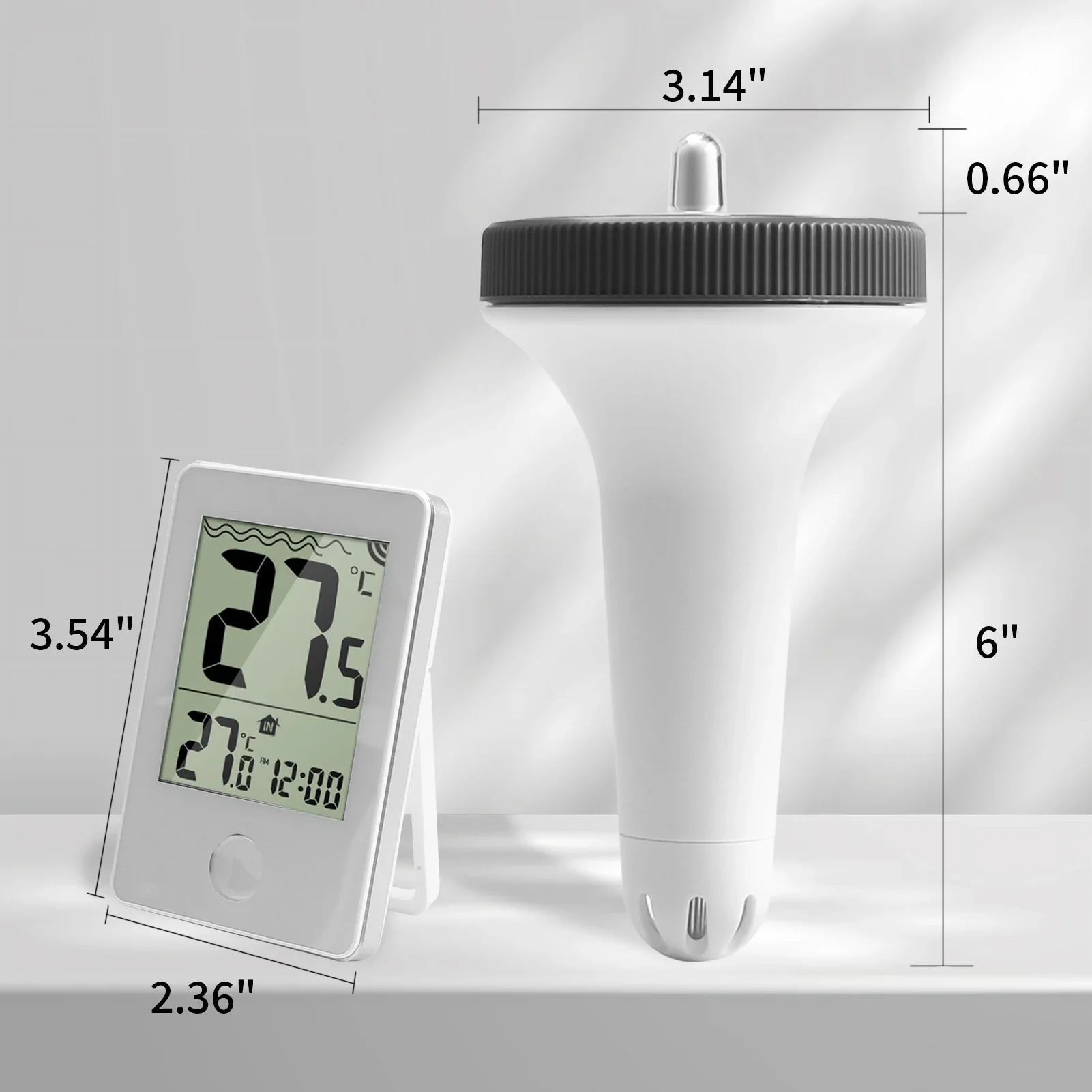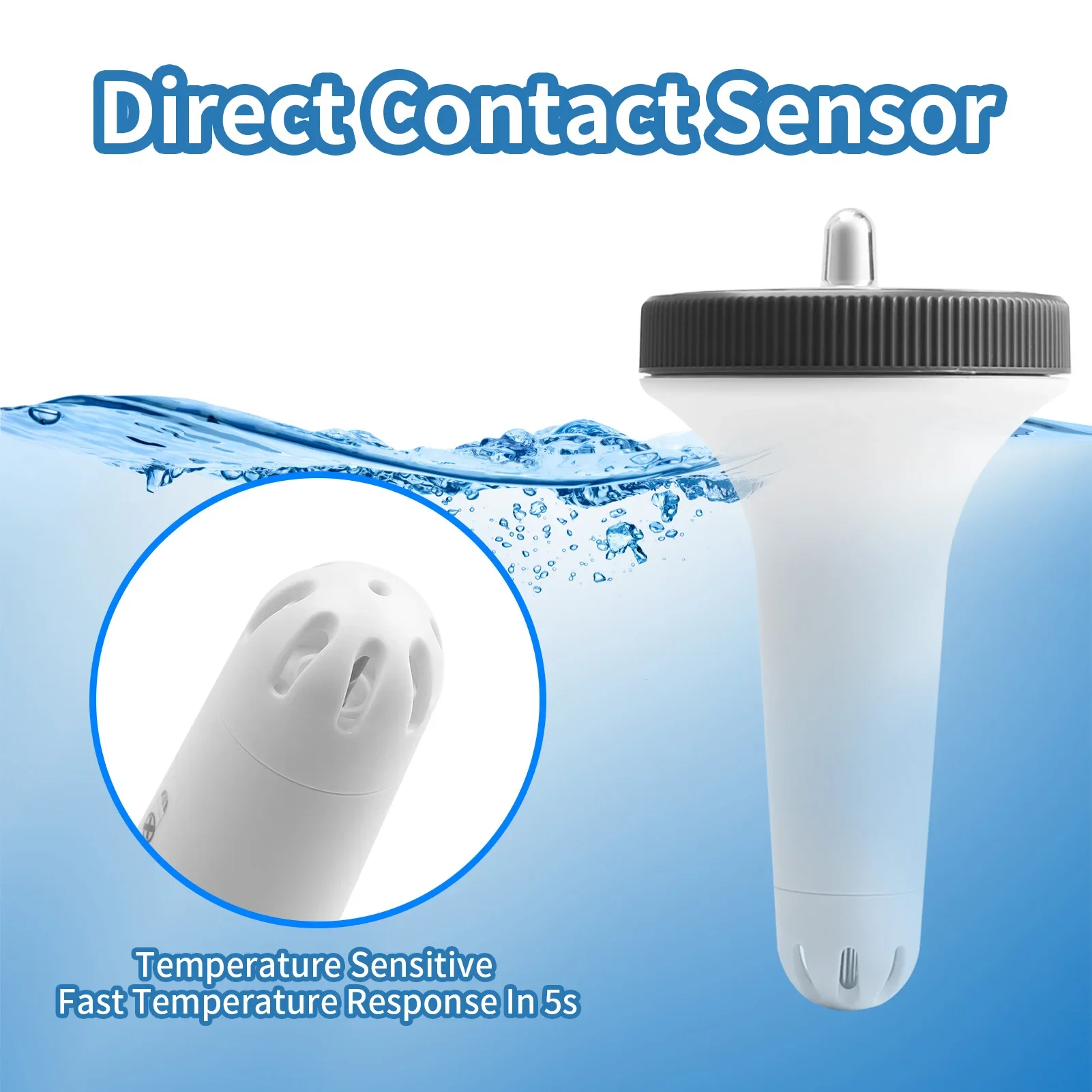 Excelente diseño impermeable: La cubierta impermeable de doble sello de alto grado IP67 incorporada permite que el termómetro de piscina flotante se coloque de forma segura en el agua.