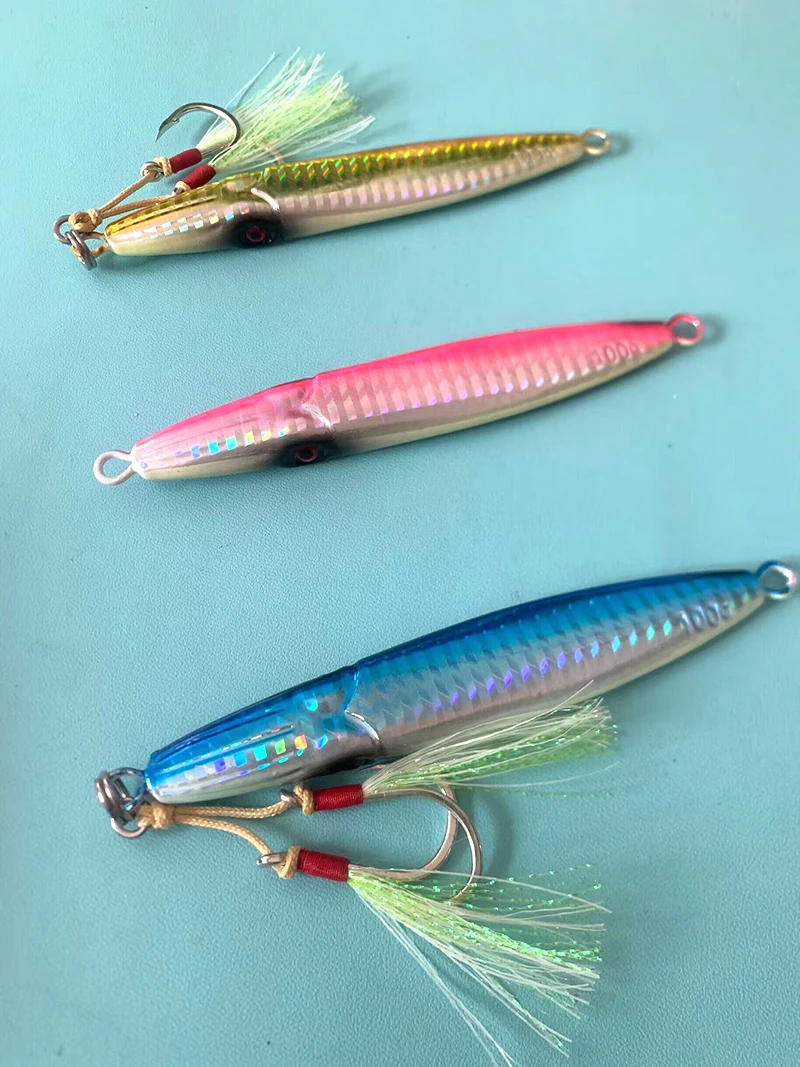 Testar-plantilla de Metal luminosa, 60g, 80g, 100g, señuelo de fundición larga, Pesca en barco, buceo profundo, cebo duro Artificial, Trolling, Jigging, Pesca