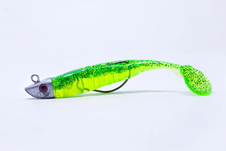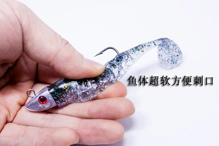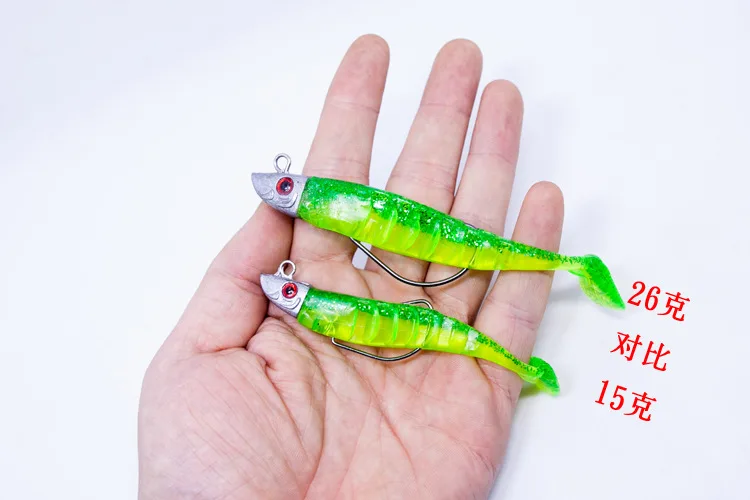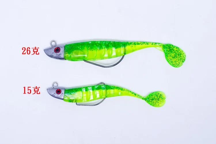 Testar-señuelo de cabeza de plomo de 13cm/26g, señuelo de anzuelo curvo con cola en T para bacalao marino, cebo suave de hundimiento lento de agua salada con pez 3D