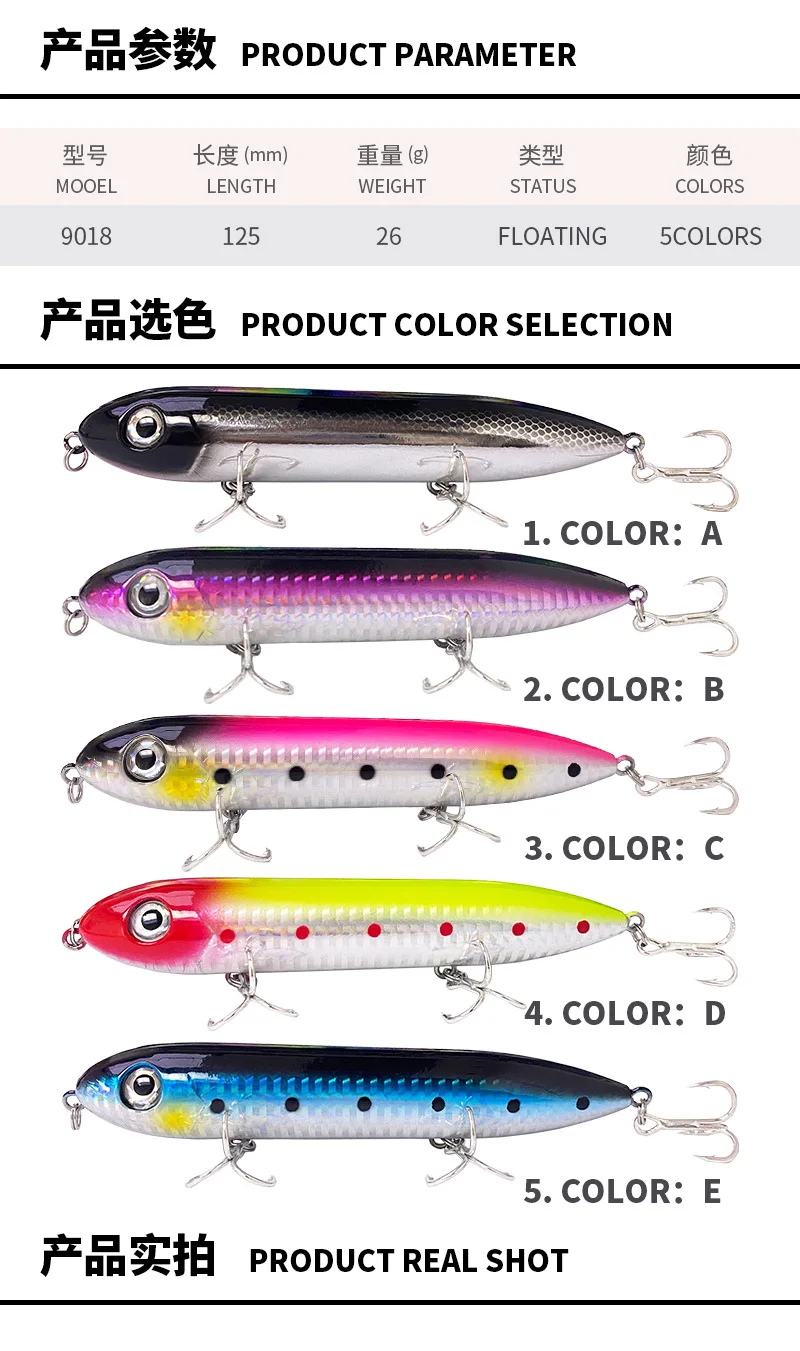 Testar-señuelo de Pesca de 125mm y 26g, cebo de lápiz flotante de fundición larga, cebo duro Artificial de Topwater para lucio y Pesca de lubina