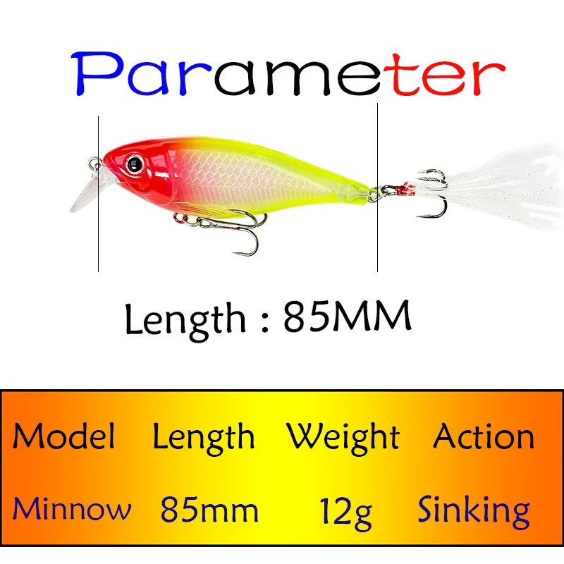 Testar-señuelo de Pesca Artificial, cebo duro de fundición larga, 85mm, 12gr, Crankbait, Wobblers, trucha, lubina