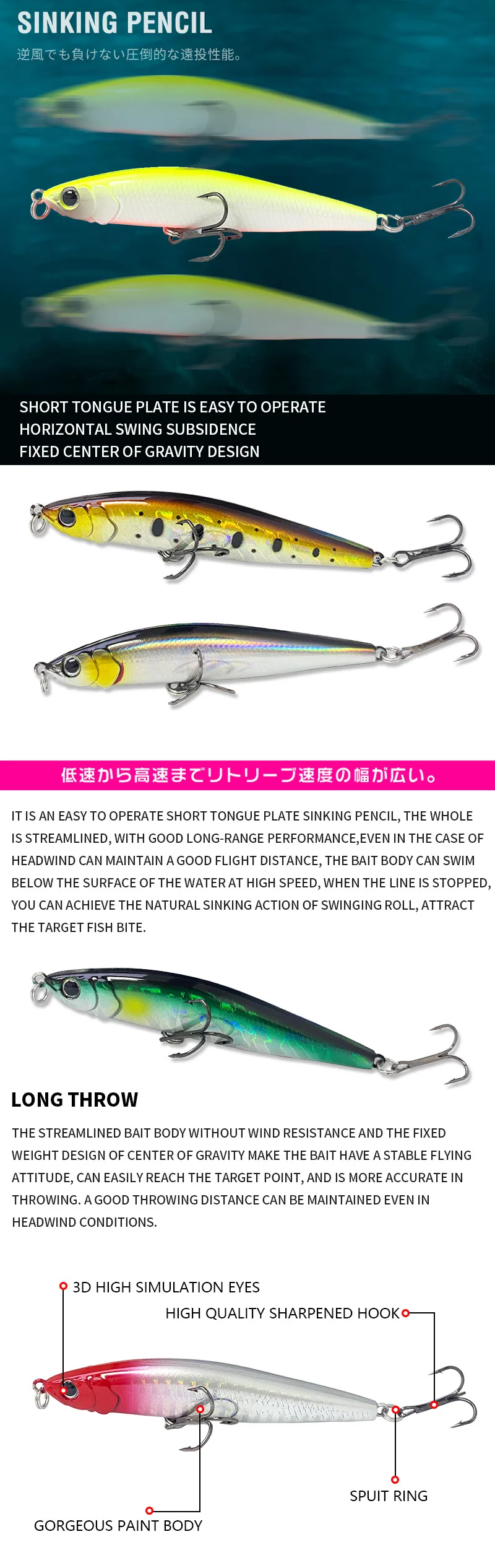 Testar-señuelo de Pesca Artificial, cebo de lápiz de hundimiento, Swimbait de fundición larga, Wobblers, Jerkbait para lubina, trucha, Lucio, 85mm, 16g