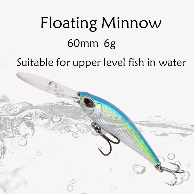 Testar-señuelo de Pesca flotante de 60mm y 6g, cebo de pececillos de labio largo, río Stream, Swimbait, Wobblers artificiales, Crankbait para Pesca de trucha