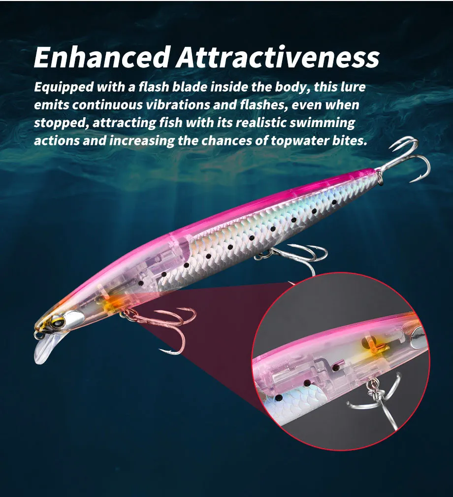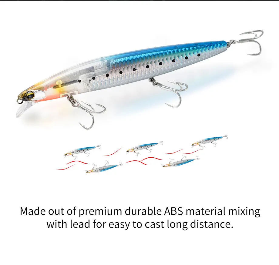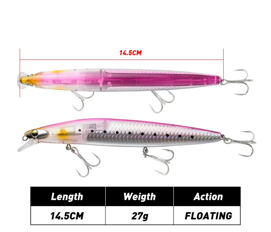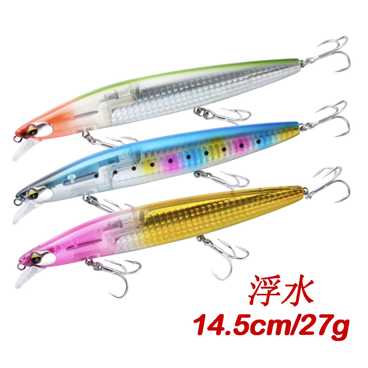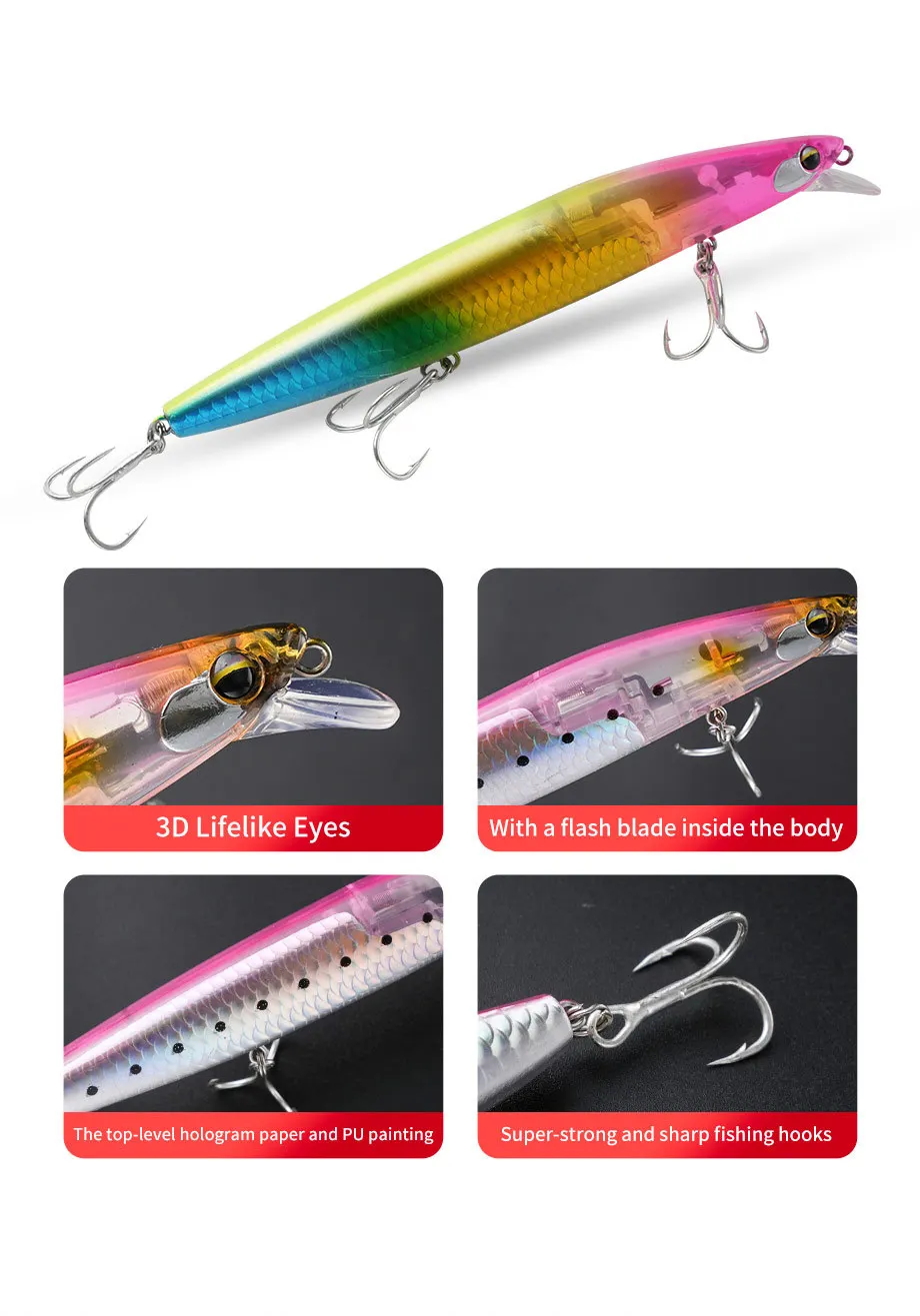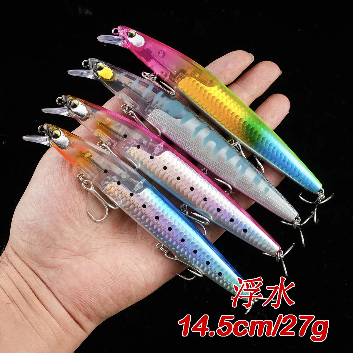 Testar-señuelo de Pesca de fundición larga, pececillo flotante de 145mm y 27g con hoja de Flash, cebo de Pesca, lubina, Stickbait de alta calidad