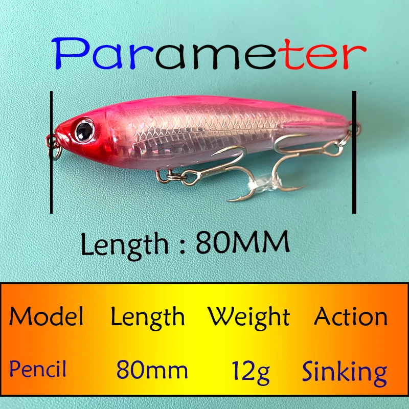Testar-señuelo de Pesca de hundimiento lento, cebo de lápiz de 80mm y 12g para agua salada, pececillo, Wobbler, cebo de plástico duro para lubina, trucha, Pesca