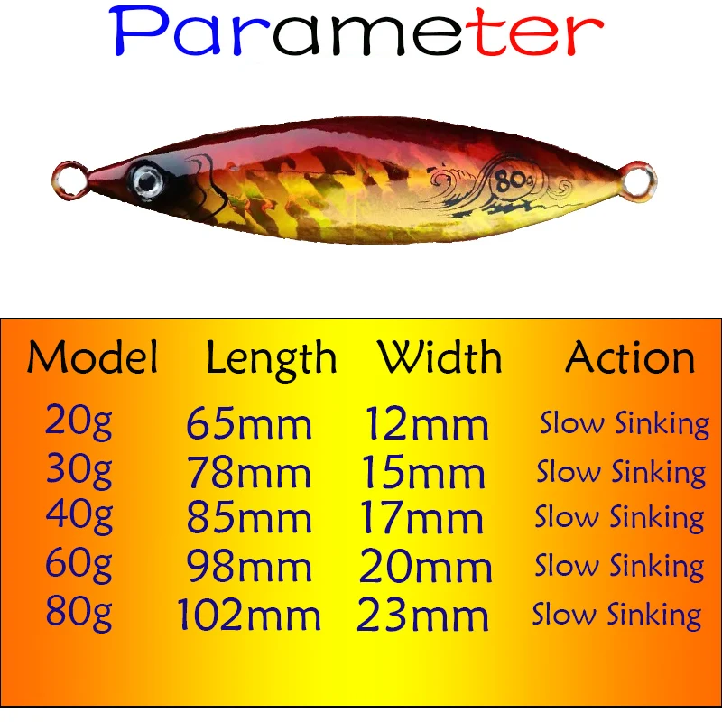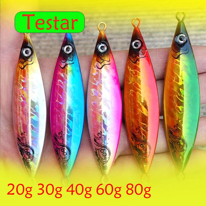 Testar-señuelo de Pesca de hundimiento lento, plantilla de Metal, 20g, 30g, 40g, 60g, 80g, para barco de aguas profundas