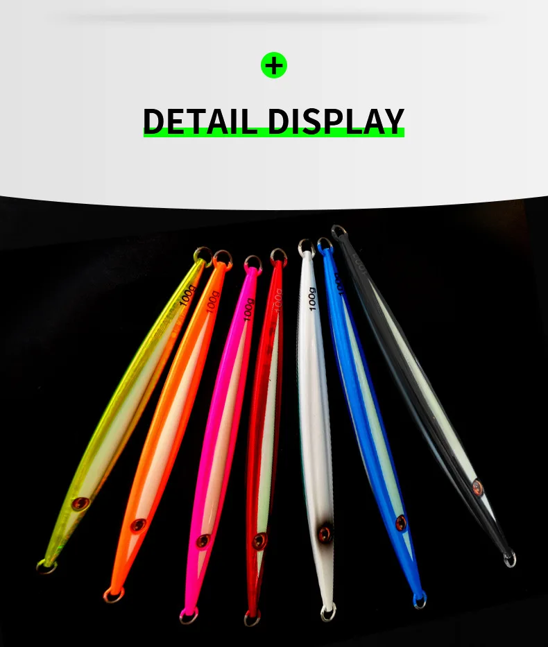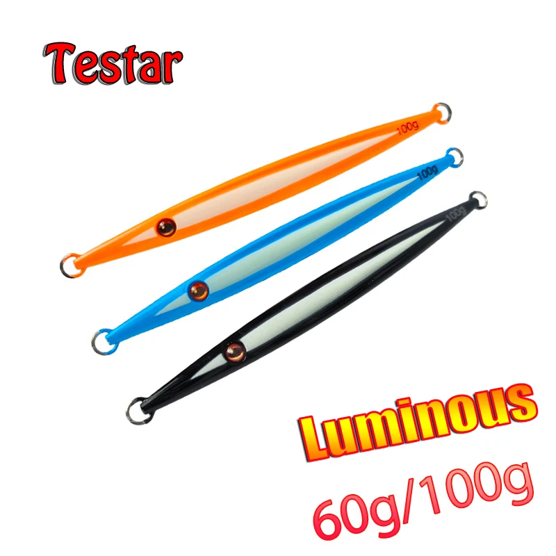 Testar-señuelo de Pesca con plantilla de Metal luminosa, 60g, 100g, agua salada, hundimiento Vertical rápido, cebo de Pesca en barco, señuelo láser para Pesca de atún GT