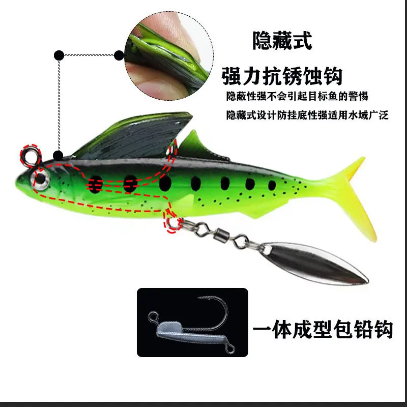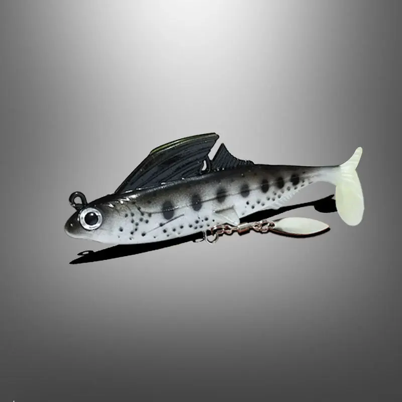 Testar-señuelos con cola en T, plantilla de plomo, 8,5 cm/12,5g, cabezal de anzuelo giratorio, cebo suave realista para lubina/perco, agua dulce y salada
