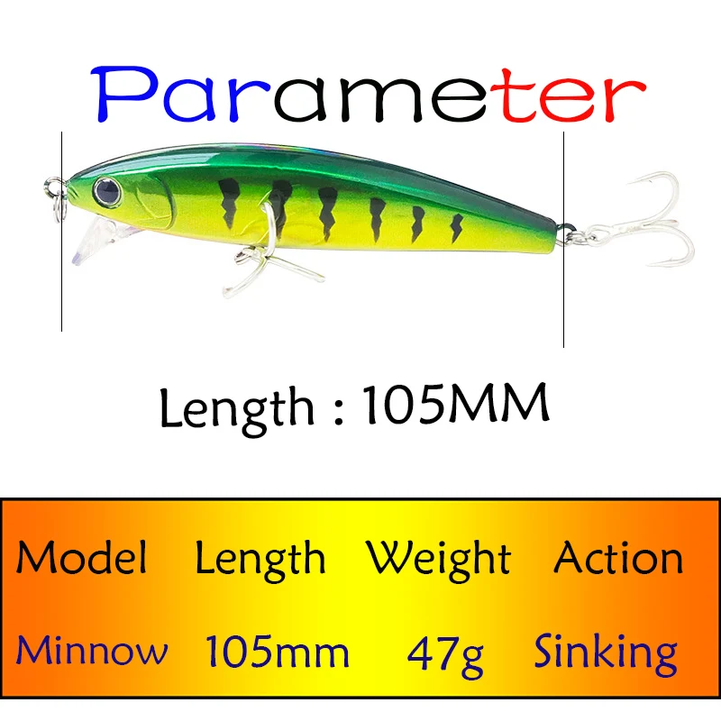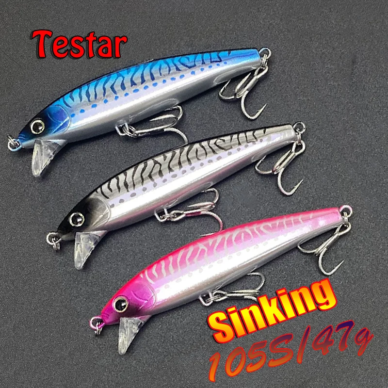Testar-Señuelos de Pesca de fundición larga, cebo Artificial para pececillos, Swimbait para atún GT, Lucio, 105mm, 47g, 1 unidad