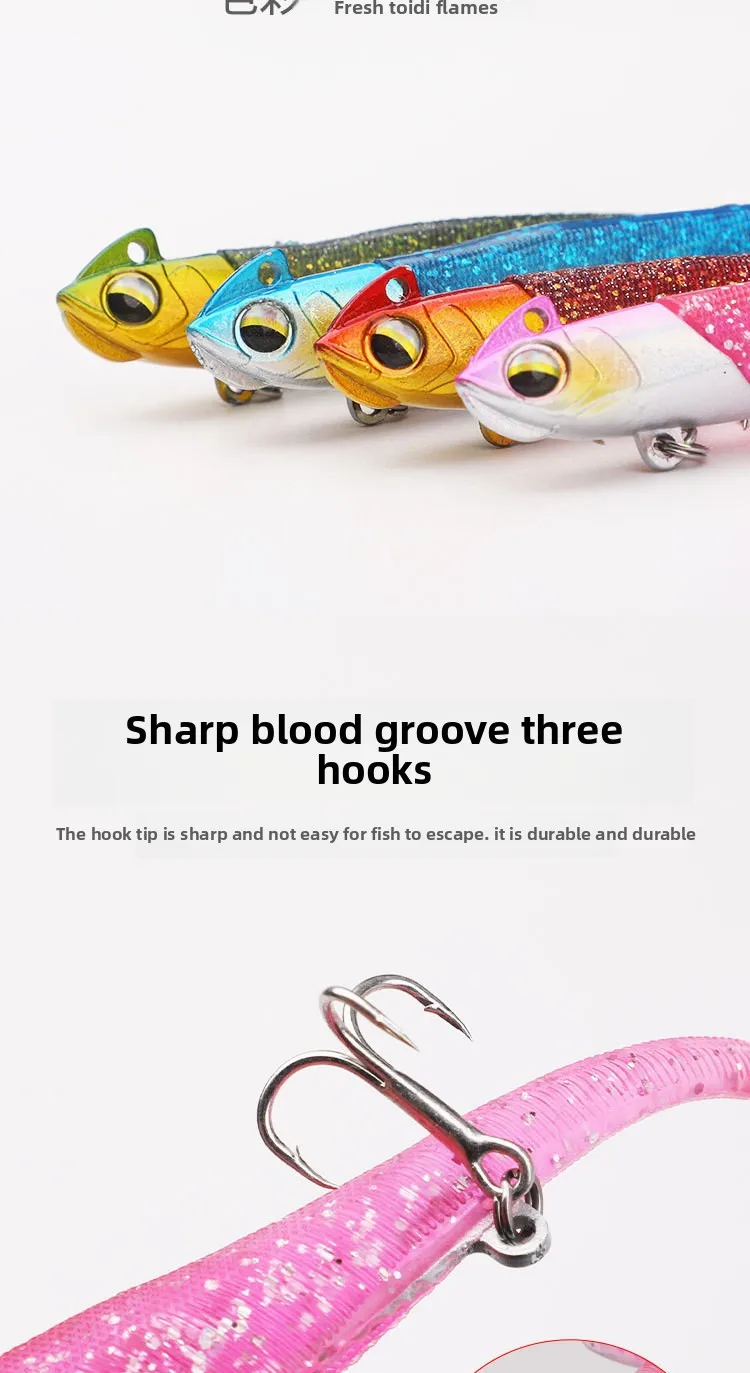 1 Uds. Cebo de pesca biónico de Metal de 6cm/10G, señuelo de lentejuelas con diente de dragón colorido con tres anzuelos de alta resistencia, herramientas de pesca