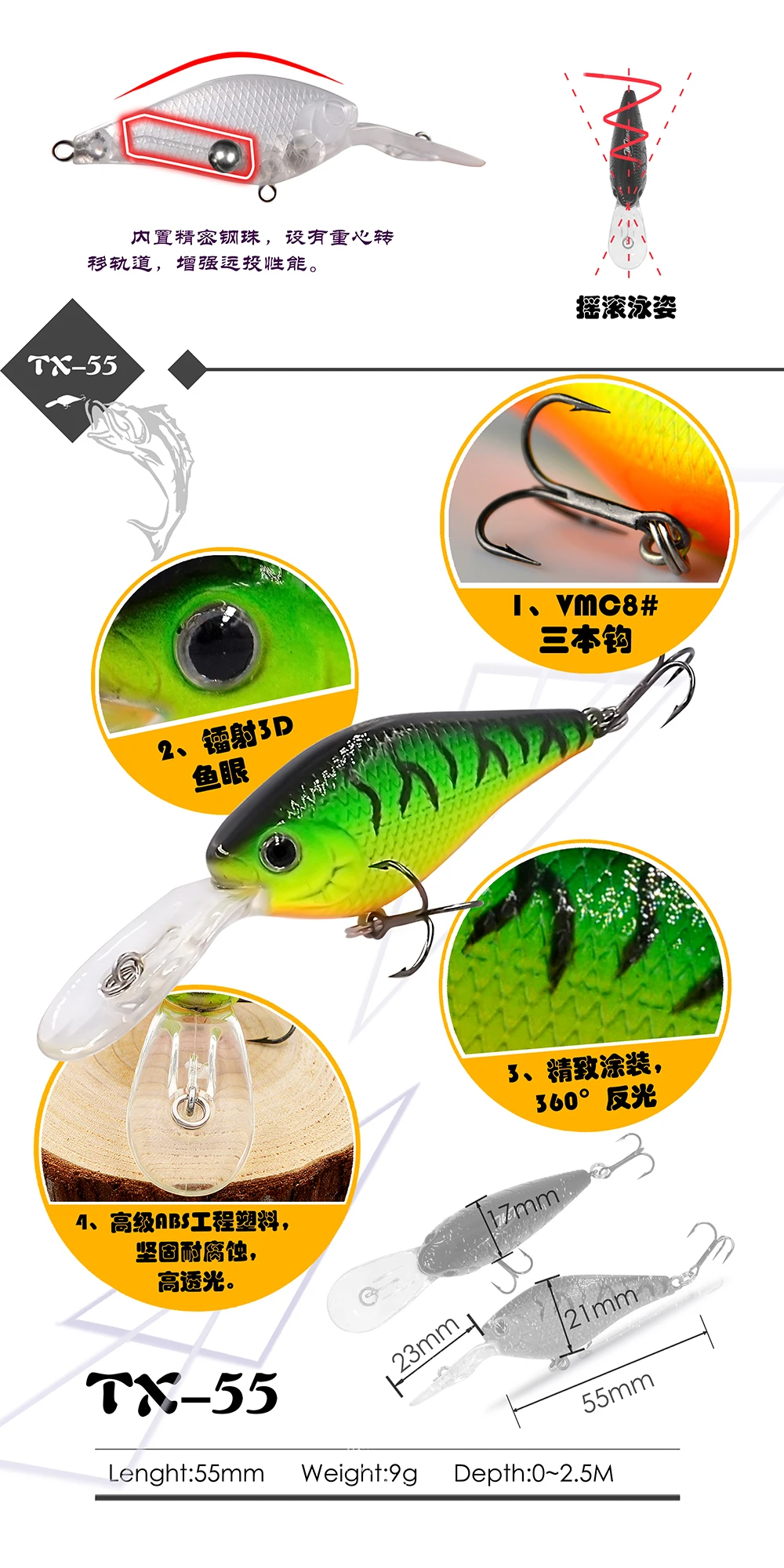 Thetime 6,7g 9g 48gCrankbait Jerkbait Wobbler cebos artificiales para Lucio perca señuelo de pesca cebo Minnow manivela Swimbait Isca pesca