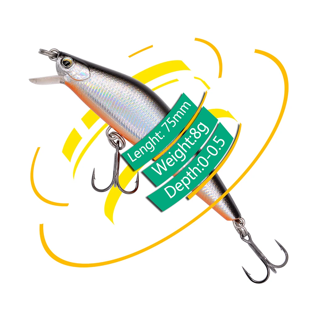 THETIME JD75 8g pececillo flotante señuelo de pesca 75mm cebo duro Artificial aparejos de pesca para lubina perca Lucio trucha señuelos