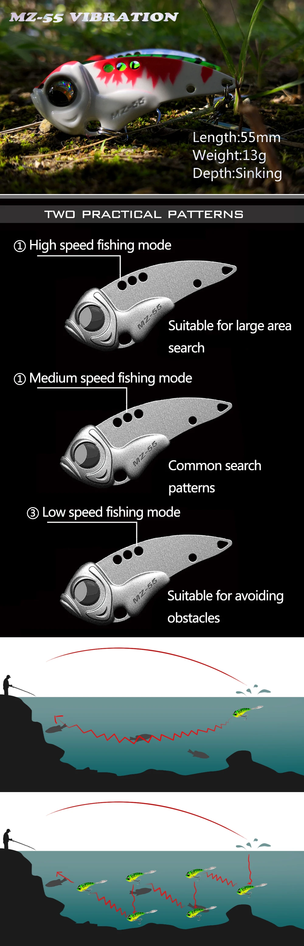 Longitud: 55mm 60mmPeso: alrededor de 13g 17gCapa de Natación: todo el agua (hundimiento)Materiales: aleación de ZincTamaño del gancho: #6 anzuelos triples