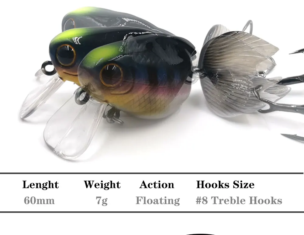 TheTime 7g PONYO Señuelos de Crankbait flotantes 2 secciones Wobblers artificiales Crank Hard Bass Bait Aparejos de pesca 60mm Trucha Wobblers