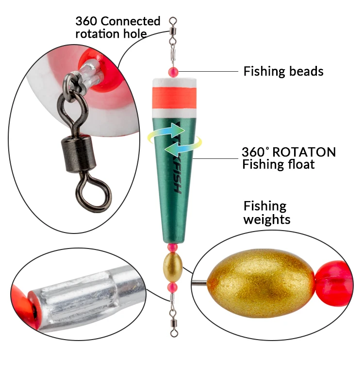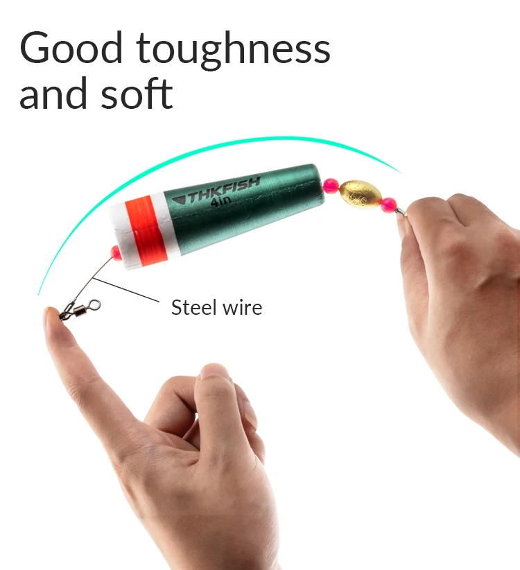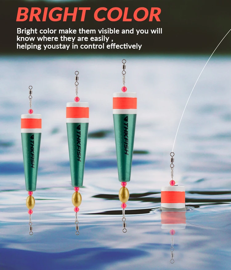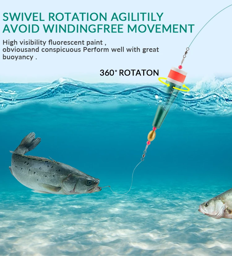5.Los flotadores y bobbers de pesca son livianos y sensibles, lo que ayuda al pescador a reconocer rápidamente la mordida de un pez;Podría entrar en el agua rápidamente con una pequeña resistencia y darse la vuelta rápidamente con una gran flotabilidad, brindándole una experiencia de pesca fácil y cómoda.