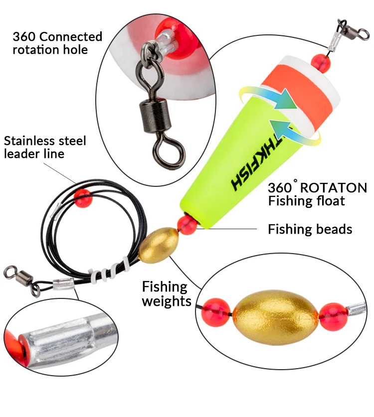 1.Nuestros flotadores de pesca están hechos de espuma de calidad, con plomo, cuentas de plástico y alambre de acero; Vienen en color amarillo brillante, que es pintura fluorescente de alta visibilidad, evidente y llamativo, por lo que sabrás instantáneamente que una vez que los peces muestran el anzuelo.