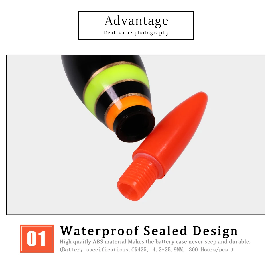 3. Luz brillante: el color brillante y luminoso es visible por la noche, flota en el agua verticalmente.Masa incorporada. La batería durará 300 horas, por lo que no tendrá que preocuparse de que el flotador no se pueda encender.