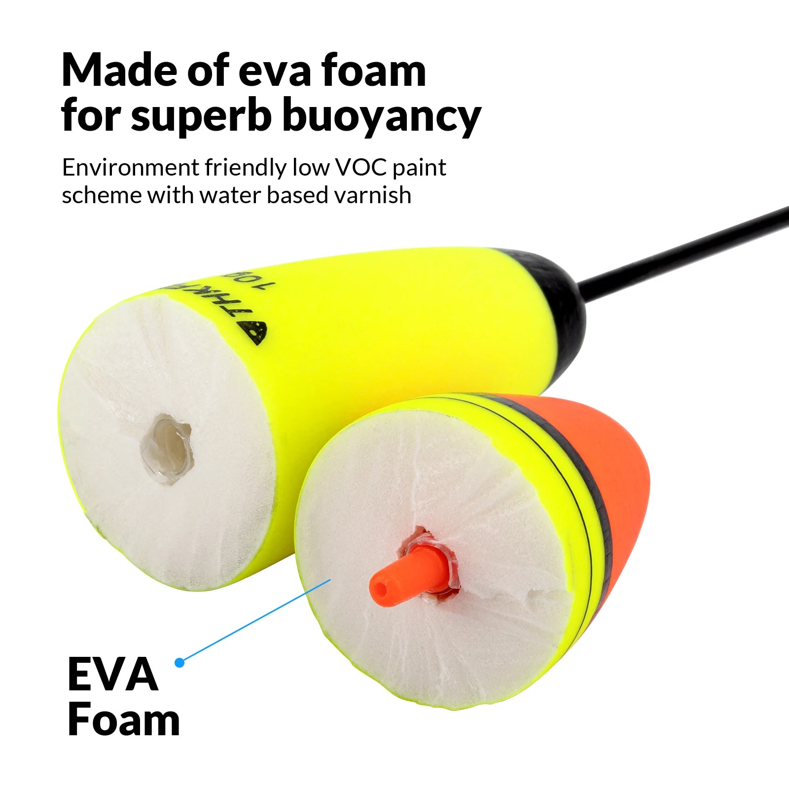 2.Flotadores de pesca con bobberas de espuma Eva: estos bobbers de pesca están hechos de material de espuma EVA.Diseño sólido, resistente al agua y a la corrosión.son fáciles de fijar al hilo de pescar.