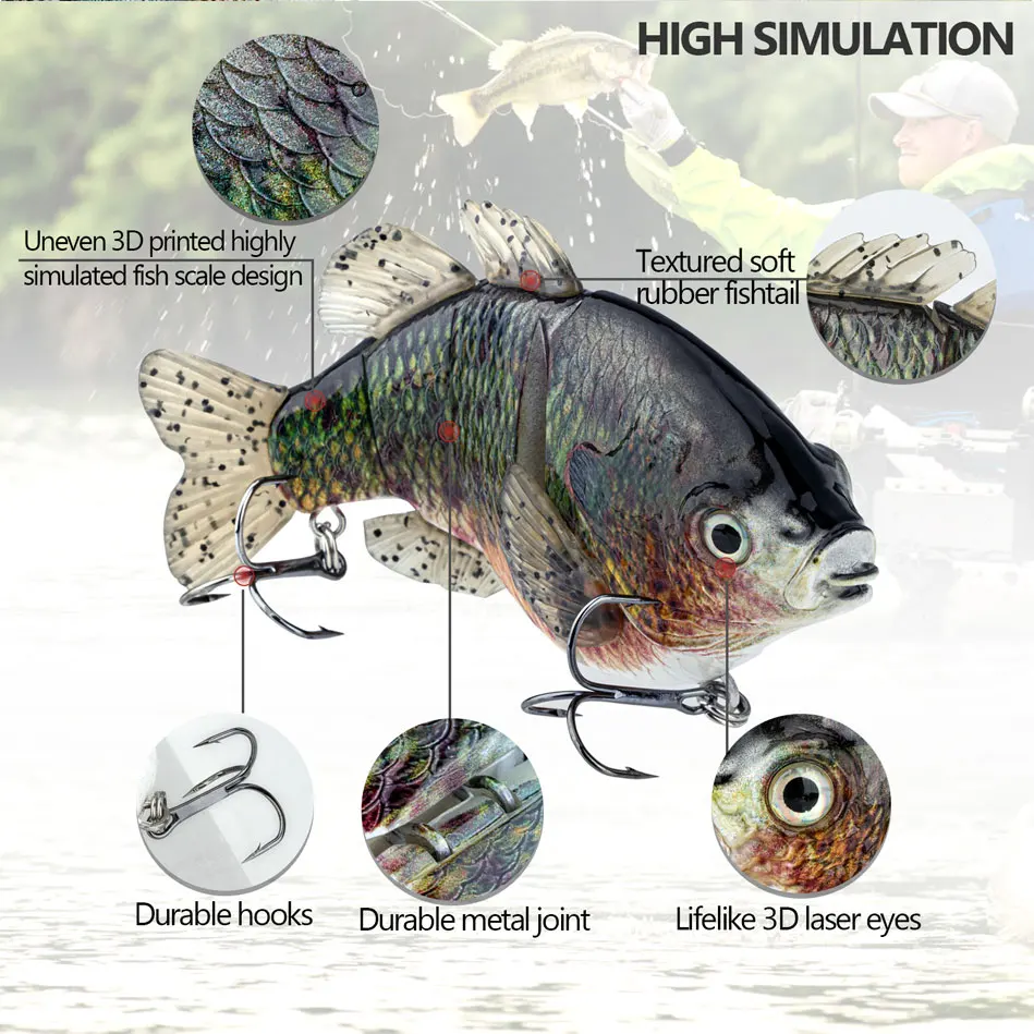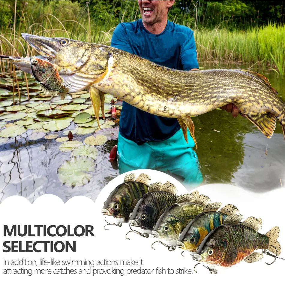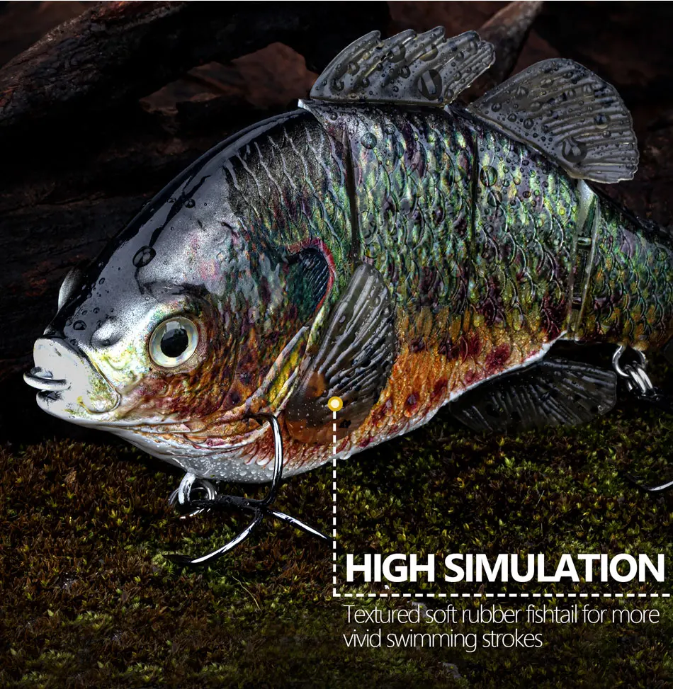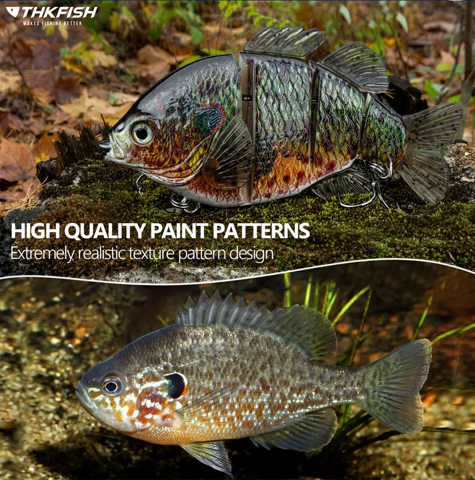 * Excelente apariencia de simulación: los patrones de color extremadamente simulados de estos señuelos multiarticulados replican perfectamente la apariencia real del pez cebo real.El cuerpo del pez creado con tecnología de impresión 3D restaura perfectamente cada detalle del pez real.Ya sea un contorno branquiador exquisito o la textura en capas de escamas de pez, todos hacen que estos señuelos swimbait luzcan más reales, lo suficiente como para confundir al pez objetivo y dejarlo loco.