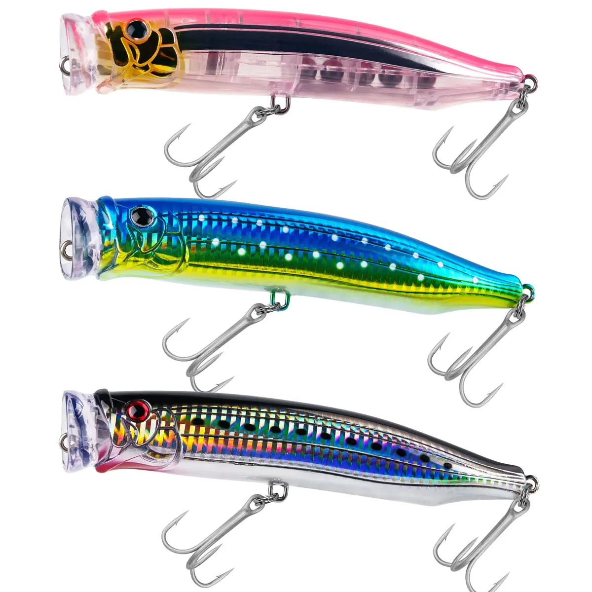 THKFISH 1 Uds. Señuelos de pesca Popper 15cm 65g cebo duro Artificial de agua salada con anzuelos triples cebos de pesca Topwater Minnow