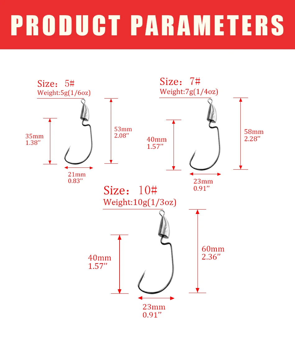 El paquete incluye: 10 Uds. Ganchos de gusano desplazados