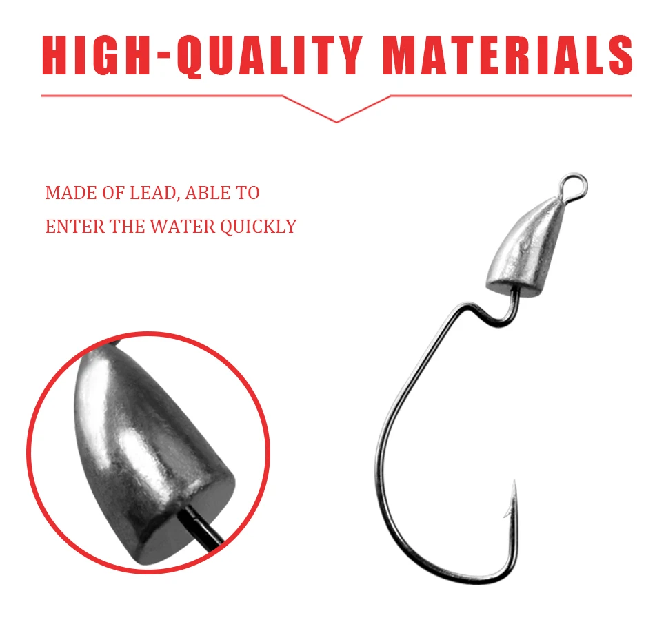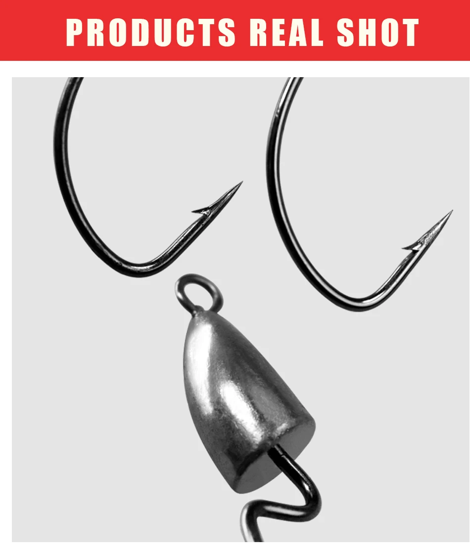 2.El gancho de alambre liviano presenta un hombro doblado de 90 grados y una punta de aguja súper.Al voltear cebos de gusanos y criaturas pequeñas en áreas estrechas, la plantilla de bala proporciona un peso fijo perfecto para entrar y salir con facilidad.