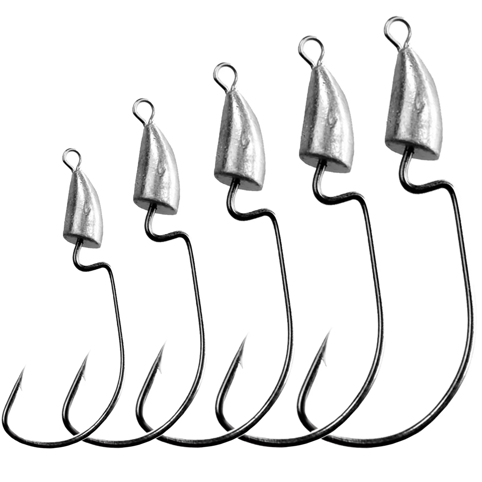 2.El gancho de alambre liviano presenta un hombro doblado de 90 grados y una punta de aguja súper.Al voltear cebos de gusanos y criaturas pequeñas en áreas estrechas, la plantilla de bala proporciona un peso fijo perfecto para entrar y salir con facilidad.