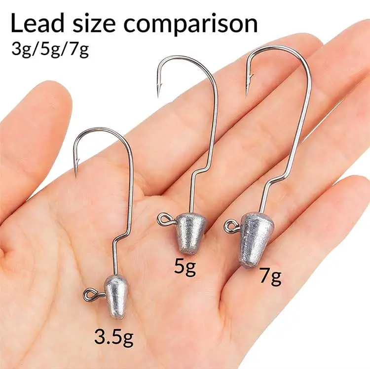 THKFISH 10 Uds anzuelos de pesca con cabeza de anzuelo 3,5g 5g 7g cabezas de bala gancho de vástago largo anzuelos de púas de acero alto en carbono para señuelo suave