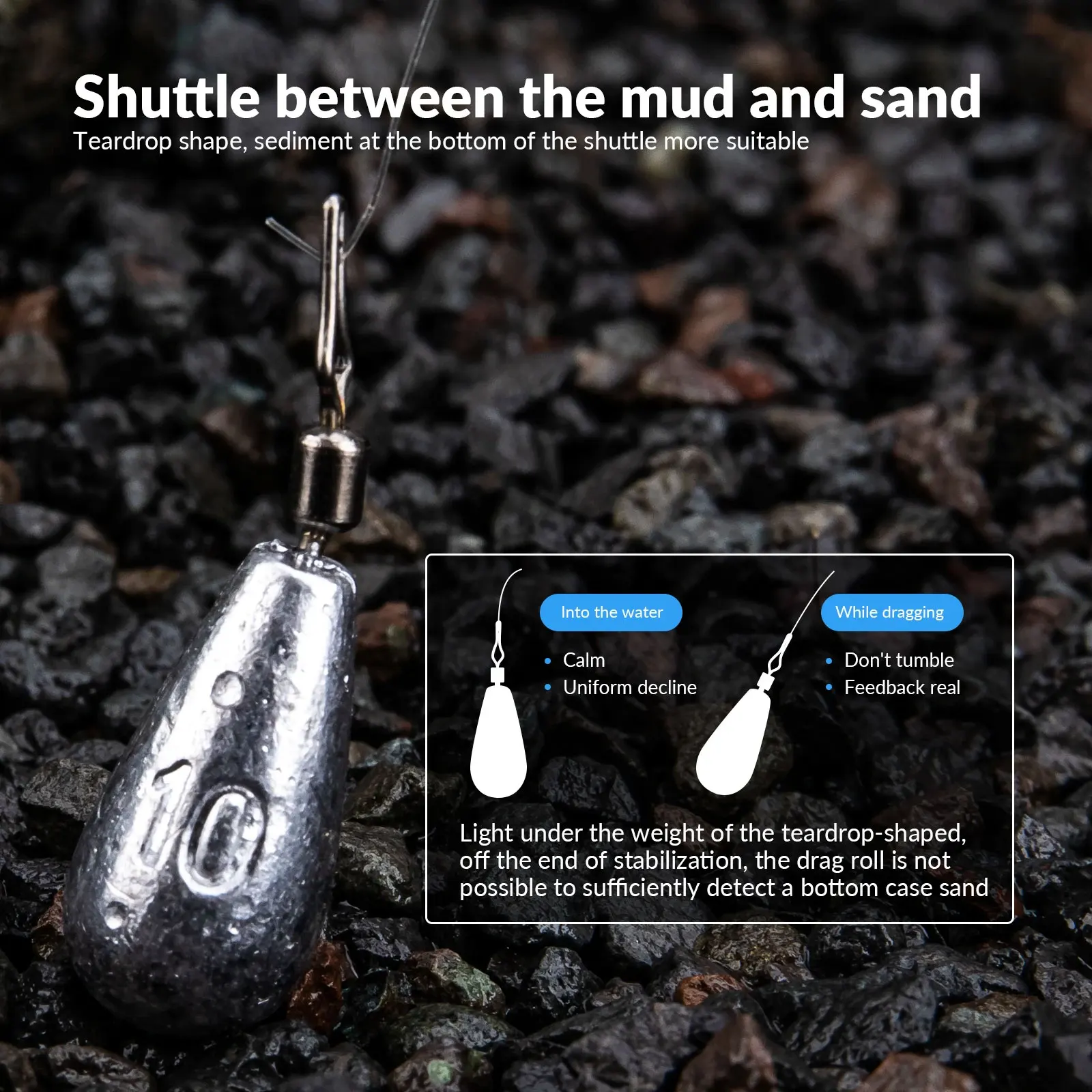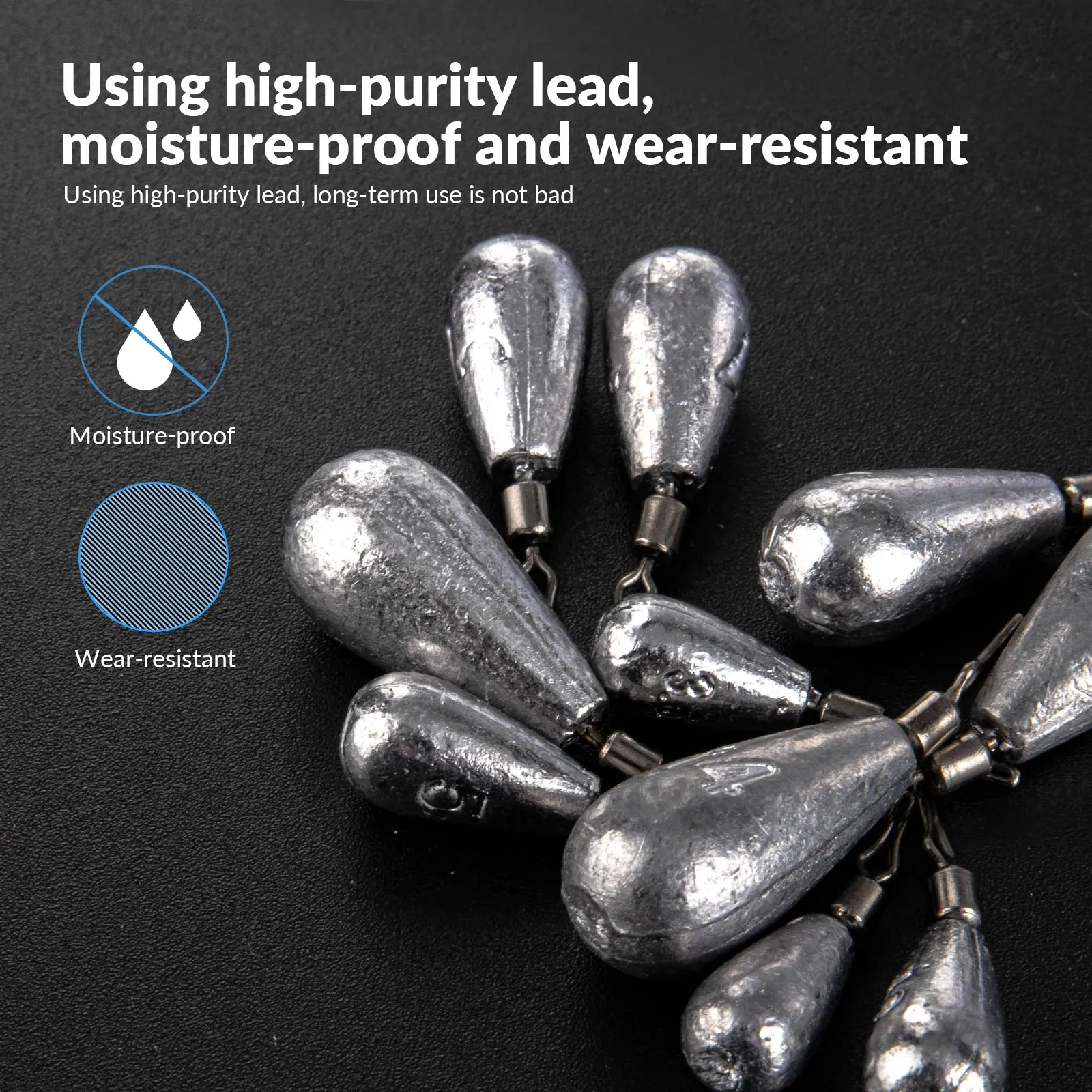 1. Las plomos de pesca tienen un diseño estilo lágrima, se arrastran fácilmente sobre el cepillo y la estructura sin colgarse ni engancharse.