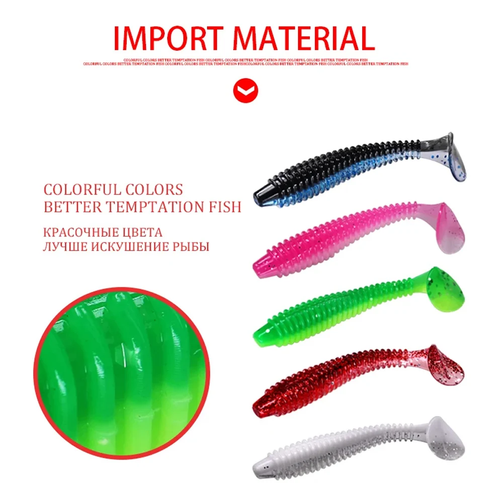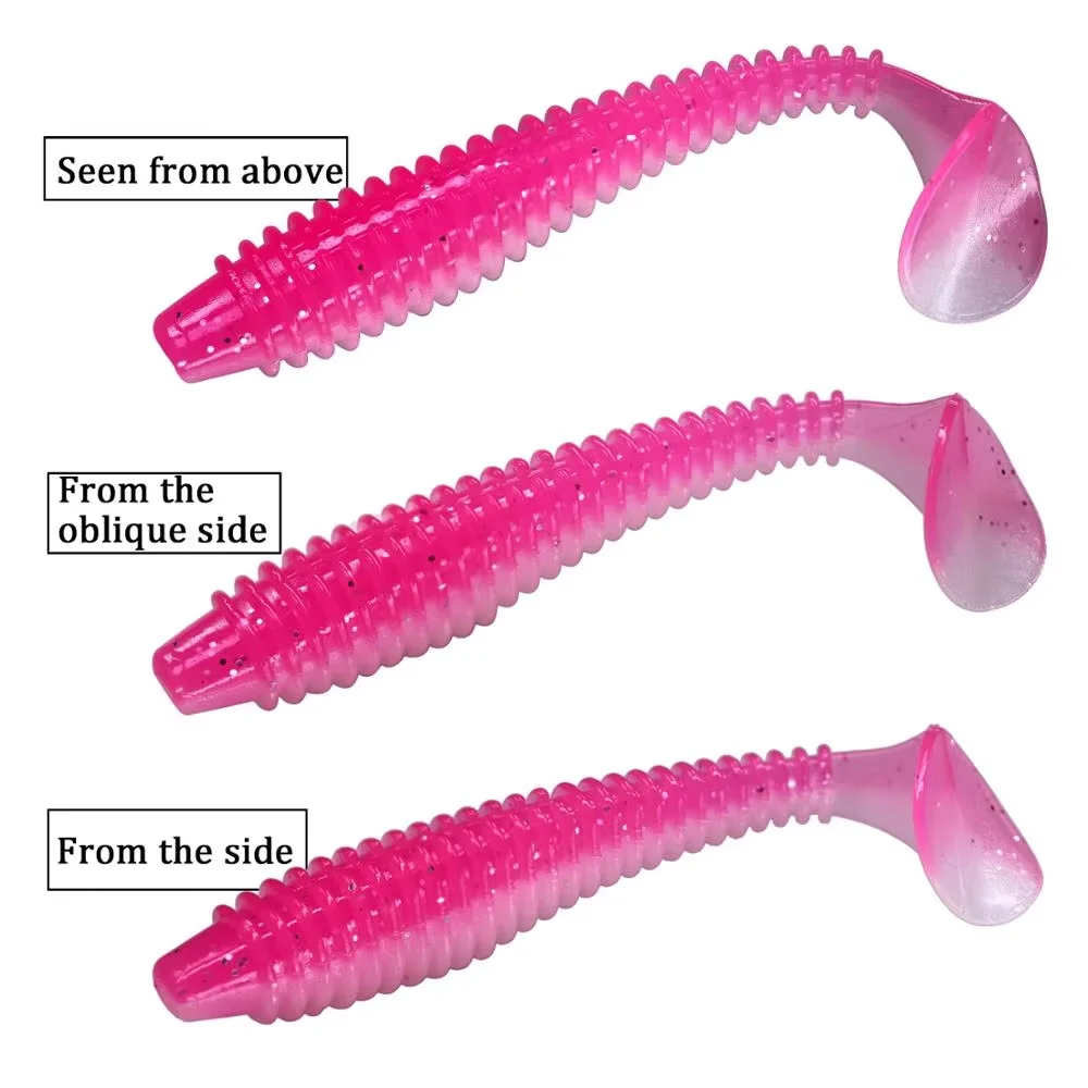3. Cola de paleta: el cebo blando viene con una cola de paleta plana, ayuda a batir y vibrar con un golpe fuerte, atrae a que los peces muerdan.