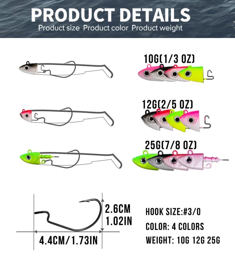 El paquete incluye: 2 uds/5 uds. Anzuelos de pesca con cabeza de plantilla