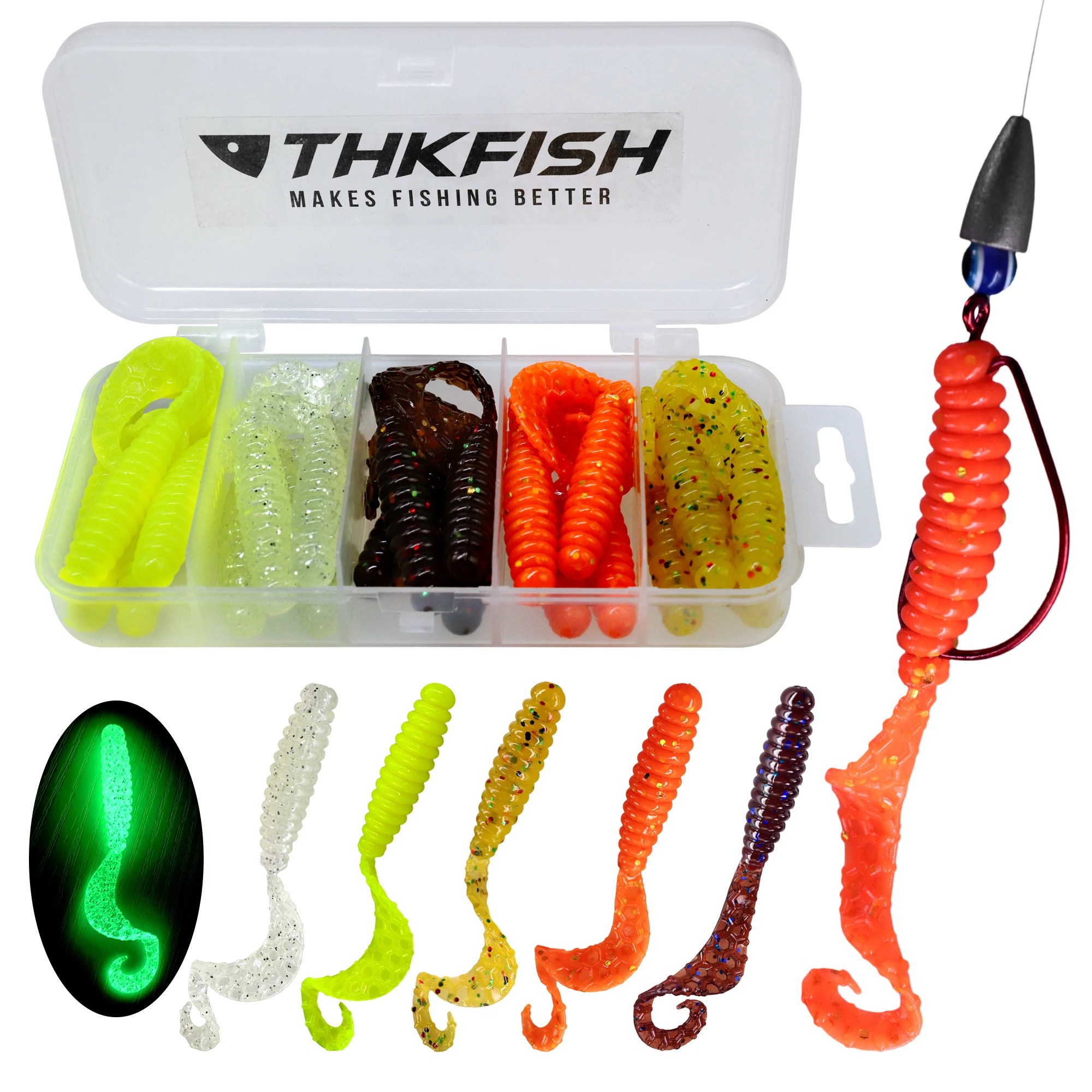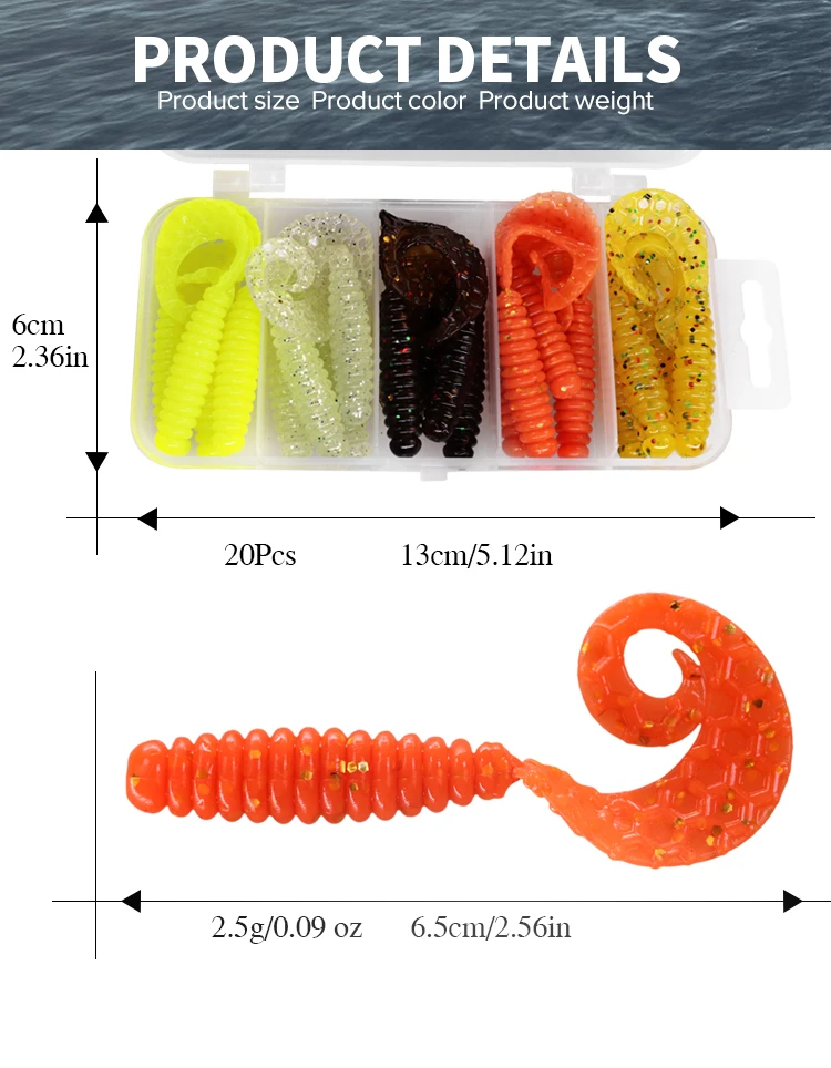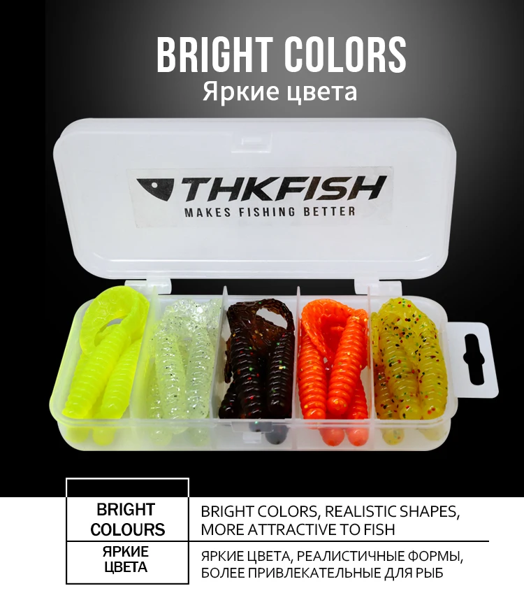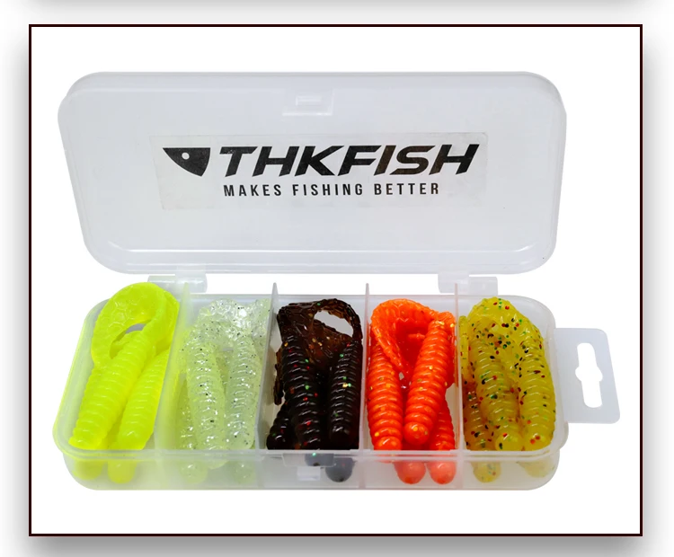 THKFISH 20 piezas 65mm señuelo suave de pesca Artificial de silicona suave cebo de gusano Jigging Wobbler larva cebos para pesca de trucha lubina