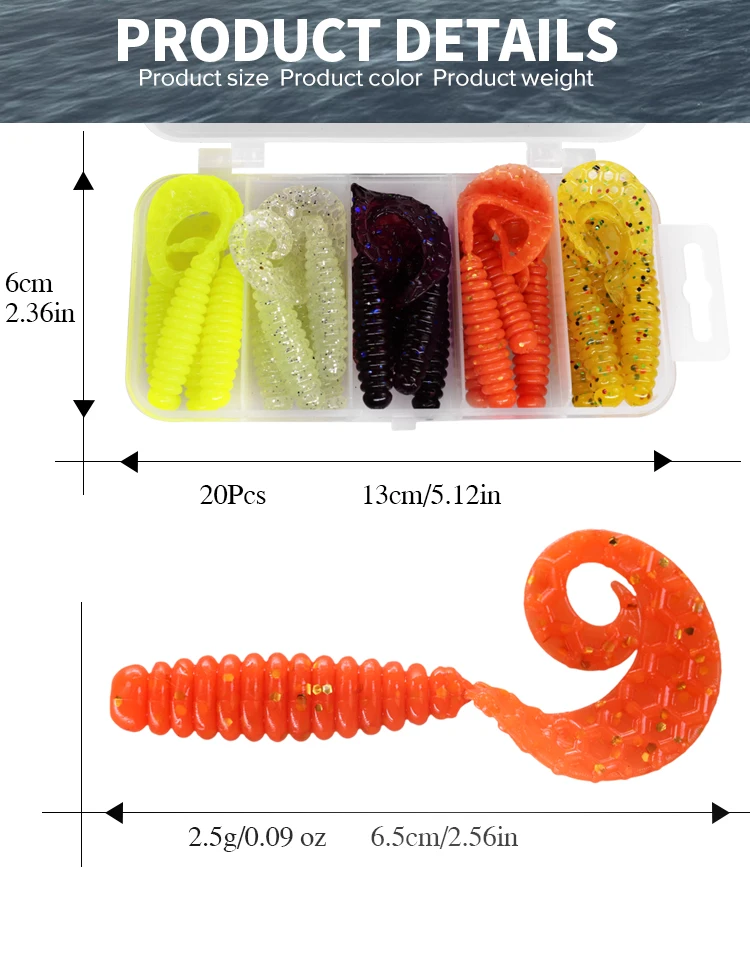 El paquete incluye: 20 unids/caja de señuelos blandos de pesca