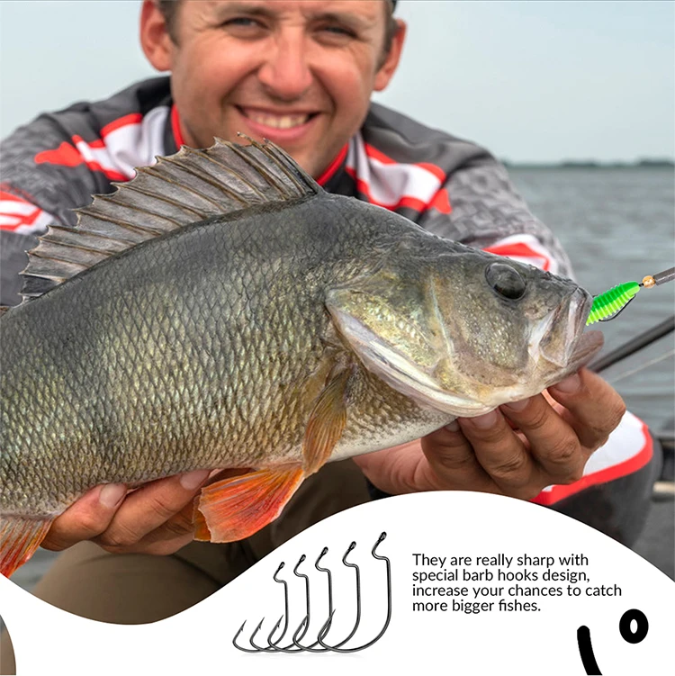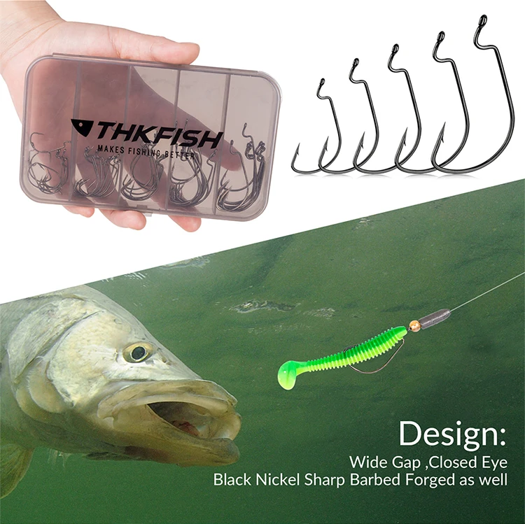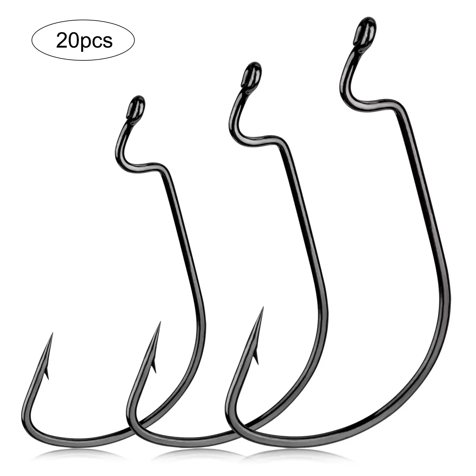 THKFISH 20 piezas anzuelos compensados de acero rico en carbono anzuelos de pesca de manivela ancha para señuelos blandos # 2- # Anzuelo de púas 3/0 para pesca de carpa