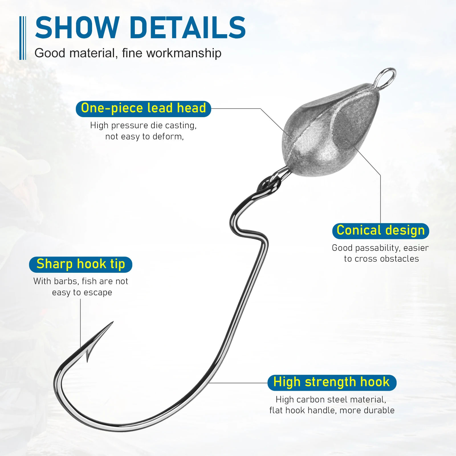 【Low Gravity Design Bottom Arc Design】The Hooks won't be fall at any angle,Still very stable to complex underwater environments.
