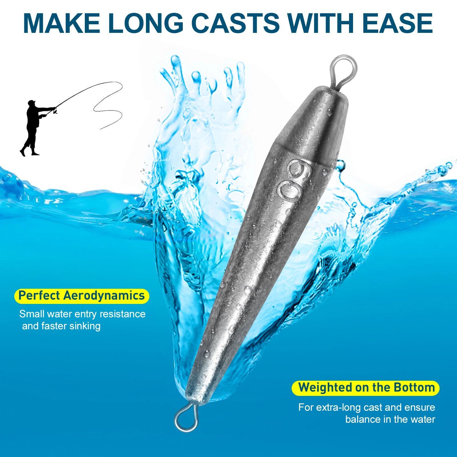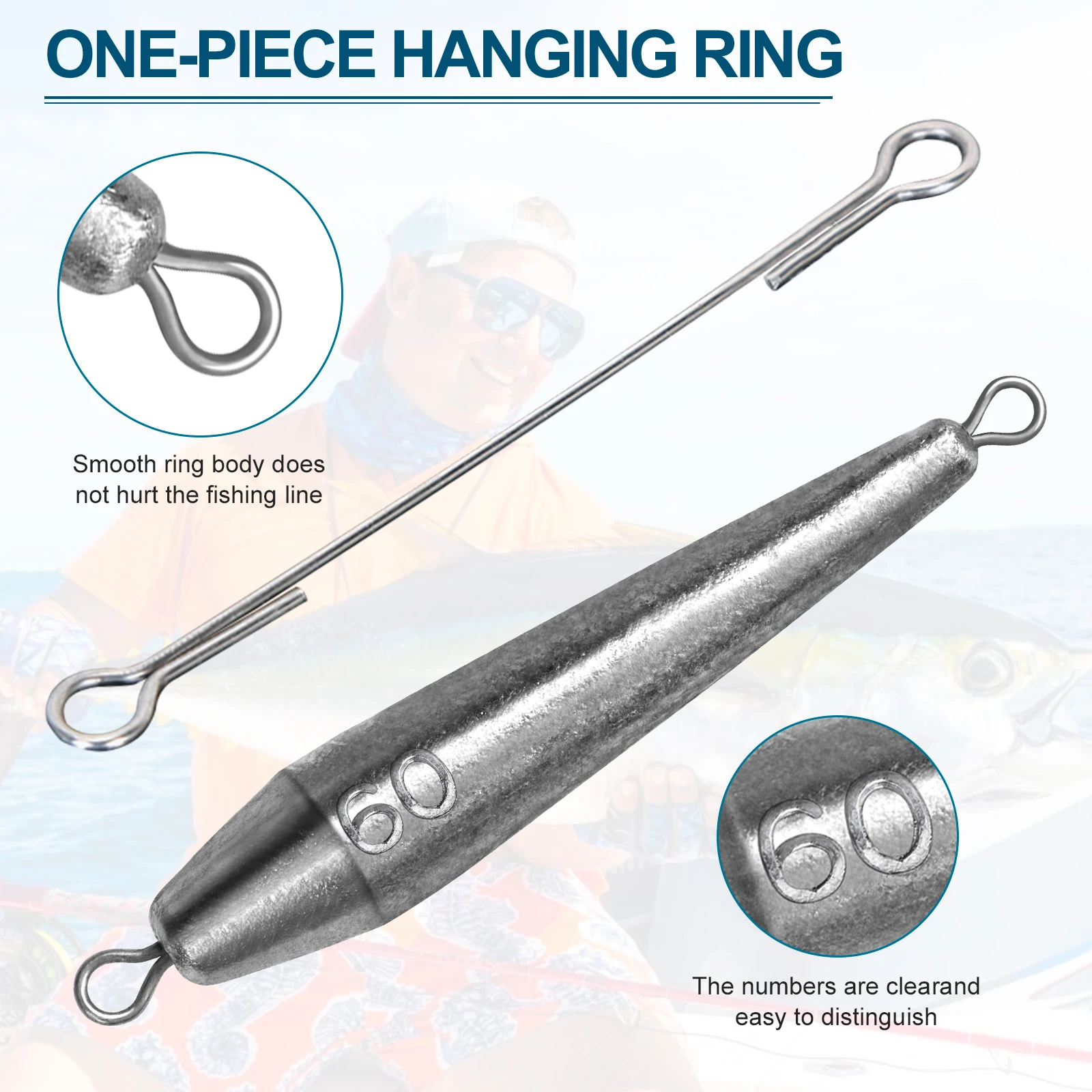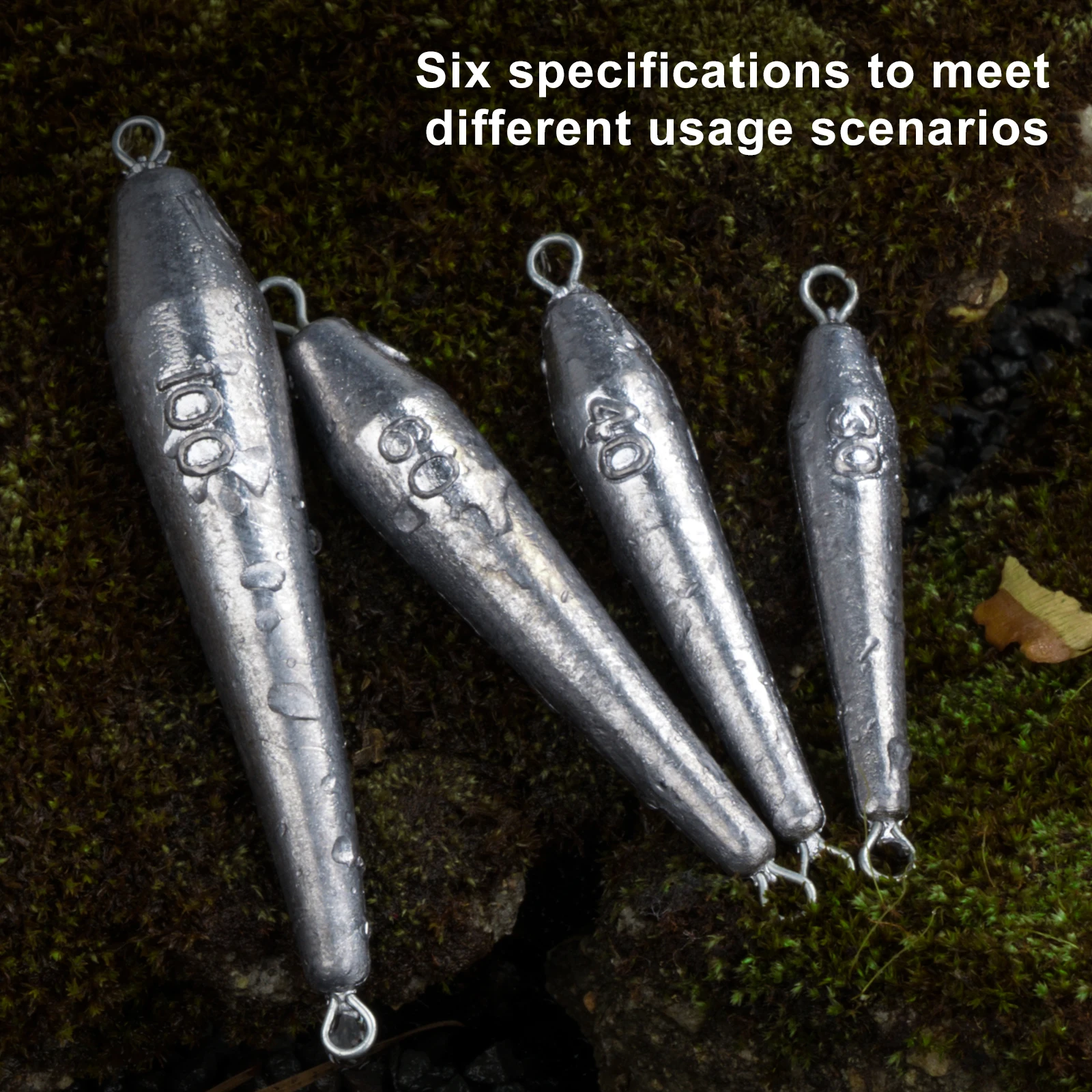 Material: plomoPeso: 50 g (1,8 oz), 60 g (2,2 oz), 80 g (2,8 oz), 100 (3,5 oz)Cantidad: 3 piezasEl paquete incluye: 3 plomos de pesca.
