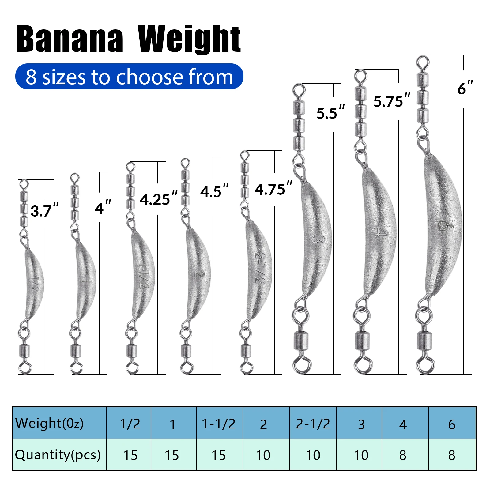 5. Los pesos de pesca tipo plátano están hechos de material premium y duradero.