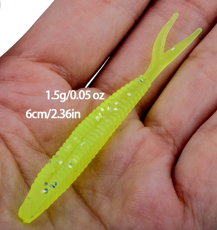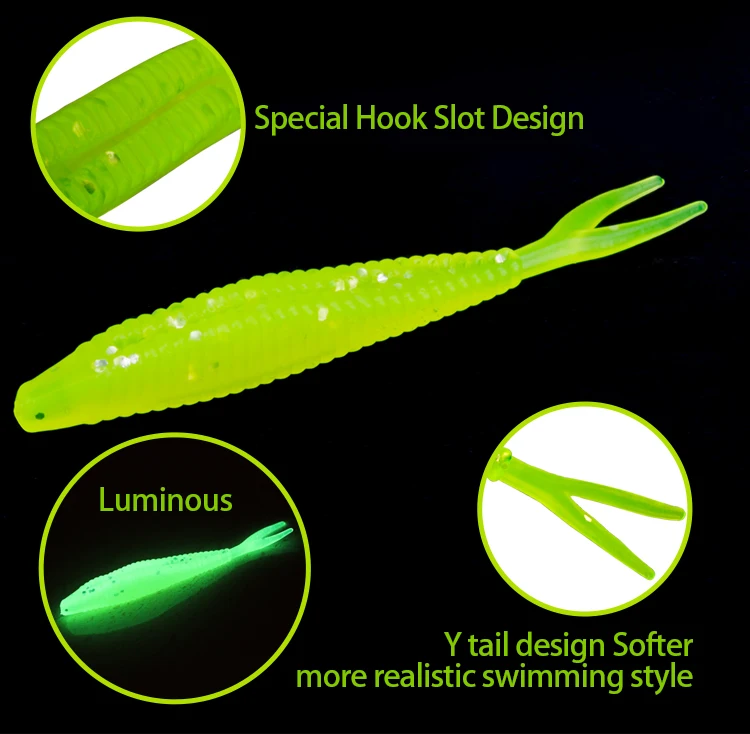 1. Este plástico blando altamente detallado es uno de los gusanos luminosos de aspecto más realista con diseño de cola de horquilla.