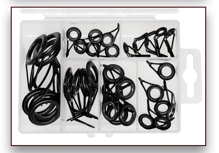 El paquete incluye: 35 guías para caña de pescar (con caja de plástico).