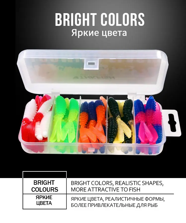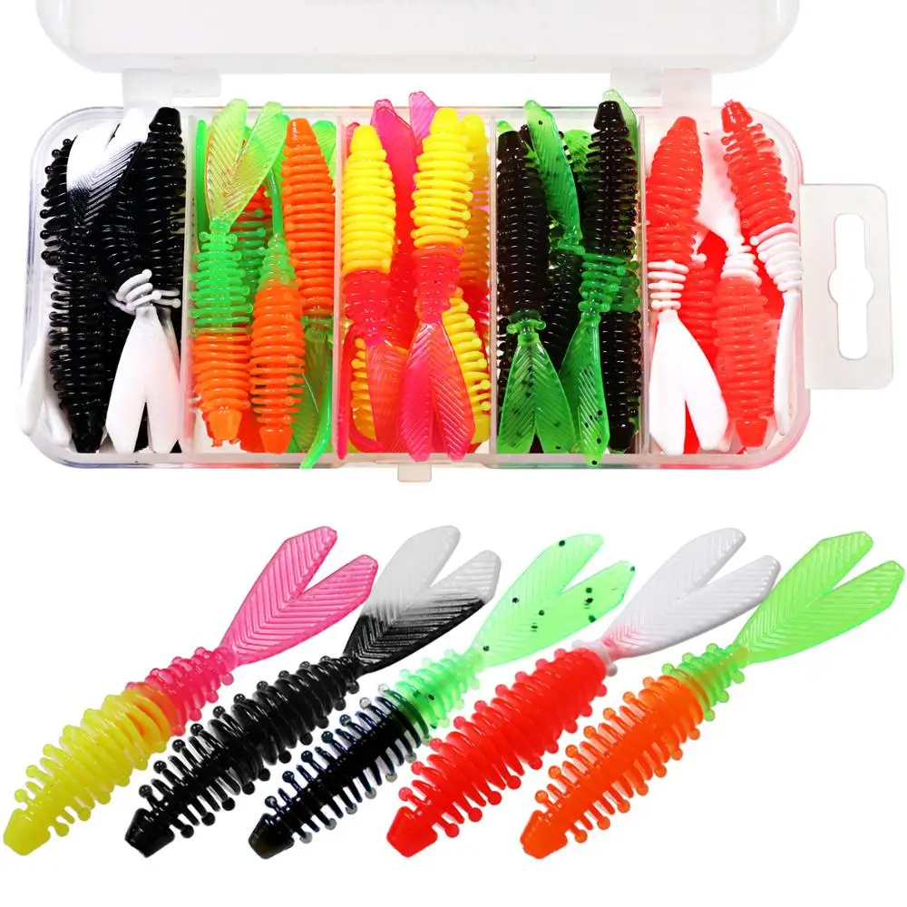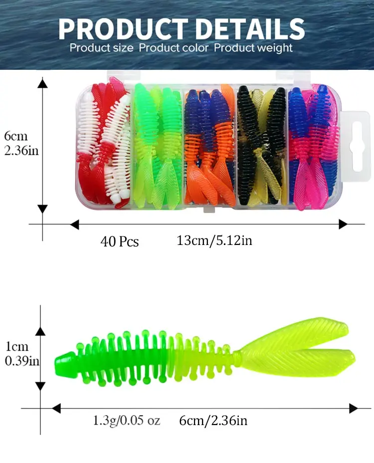 El paquete incluye: 40 señuelos de pesca blandos.